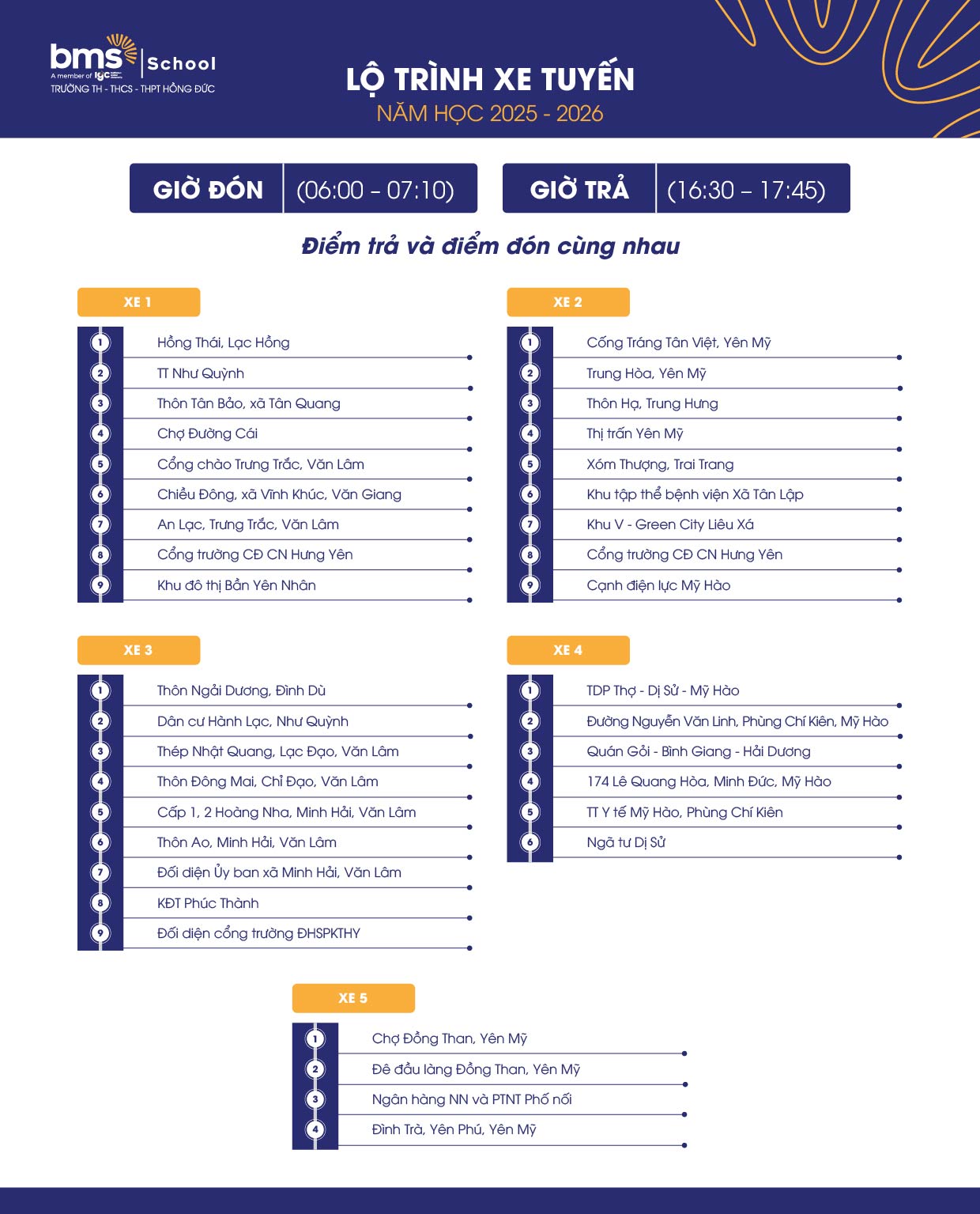 Lộ trình xe tuyến tiểu học