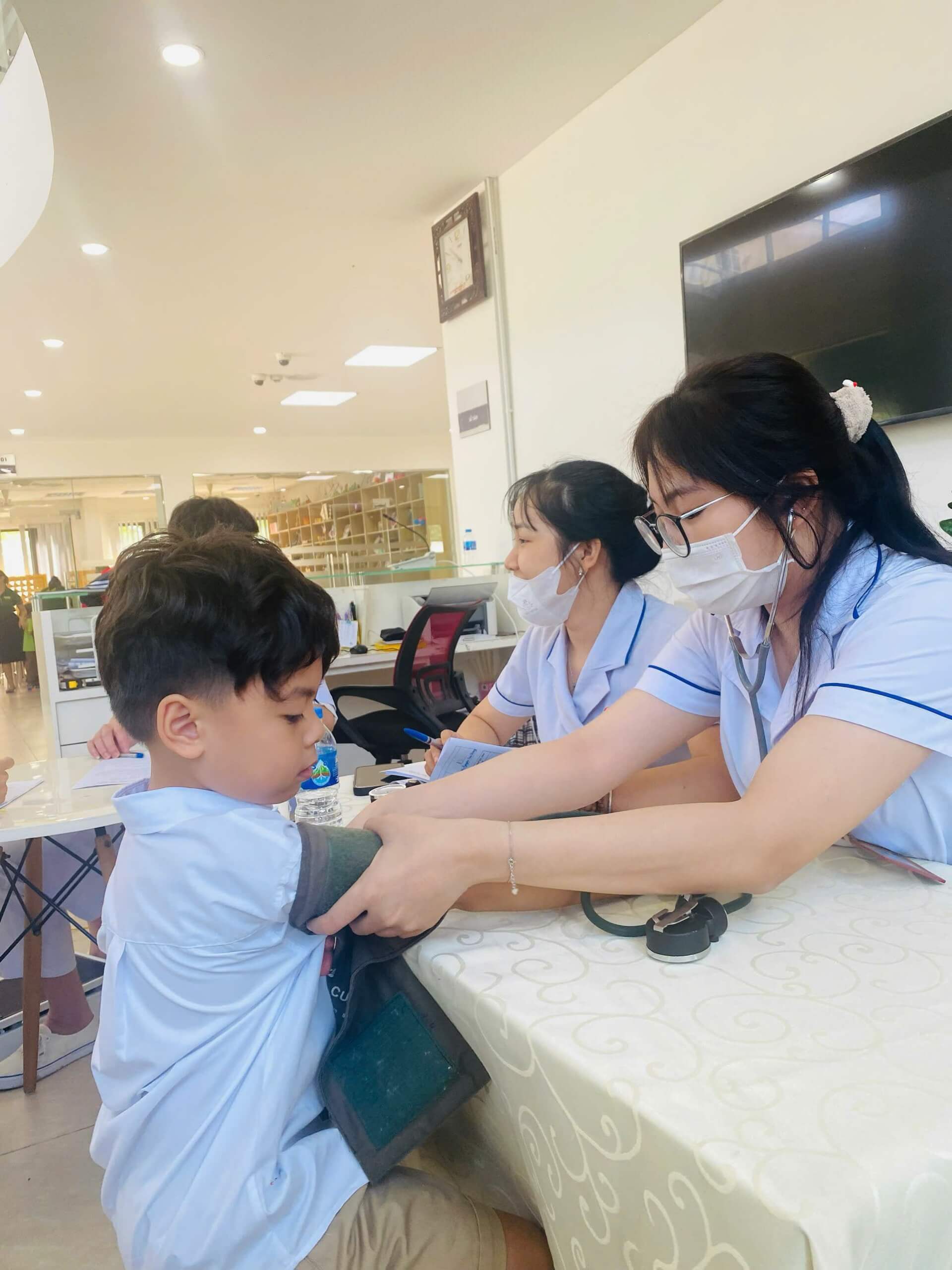 Học sinh được khám sức khỏe 01 lần/ năm. Kết quả khám gửi đến gia đình và lưu trữ tại phòng Y tế nhà trường. Cán bộ Y tế Nhà trường thực hiện kiểm tra sức khỏe sơ bộ cho học sinh mới bắt đầu vào trường học.