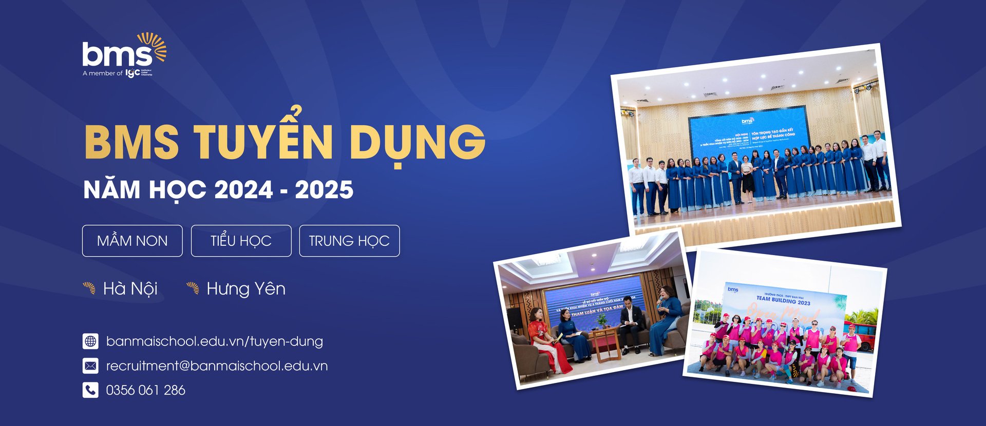 Welcome to the BMS recruitment page. We are proud to be the leading private education system in Ha Dong, with 16 years of experience implementing educational programs from Kindergarten to High School, along with an experienced team of teachers and staff, a professional working environment, modern facilities, providing development opportunities for every individual at BMS.