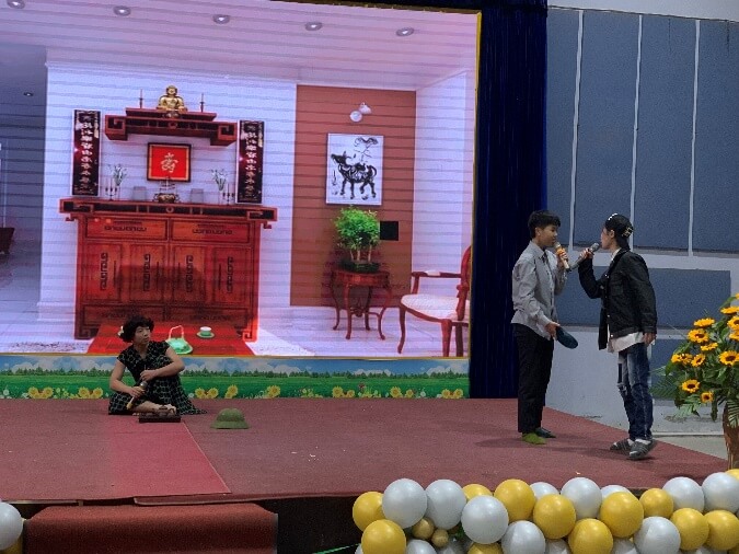 Chuyên đề tiếp tục với tiểu phẩm “Điều ước của mẹ” do các bạn học sinh 10A5 thể hiện. Nội dung được các bạn học sinh chắp bút phản ánh thực trạng sống của một bộ phận giới trẻ hiện nay. Các bạn có xu hướng xem nhẹ tình mẫu tử và tình cảm gia đình, tập trung vào cuộc sống hưởng thụ với các mối bận tâm bên ngoài xã hội. Một tiểu phẩm kết thúc có hậu, đề cao sự biết ơn của những người con với công lao to lớn của người mẹ. Với kịch bản đơn giản, dễ hiểu cùng lối diễn xuất tự nhiên, 10A5 đã thành công truyền tải với mọi người ý nghĩa của sự tri ân những người phụ nữ.