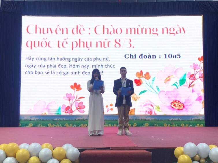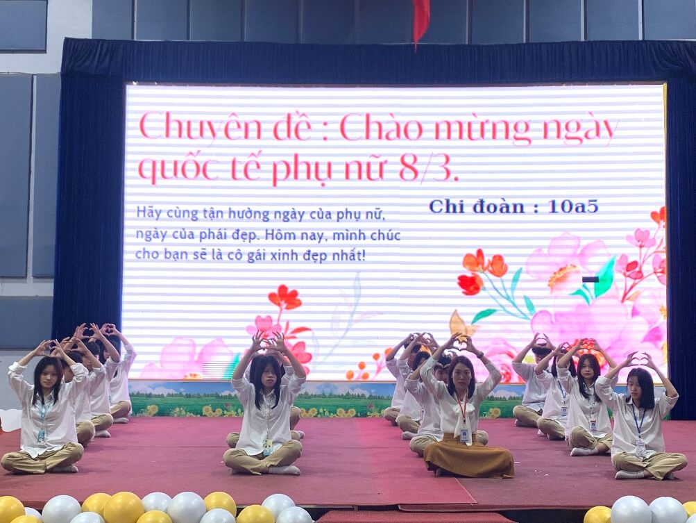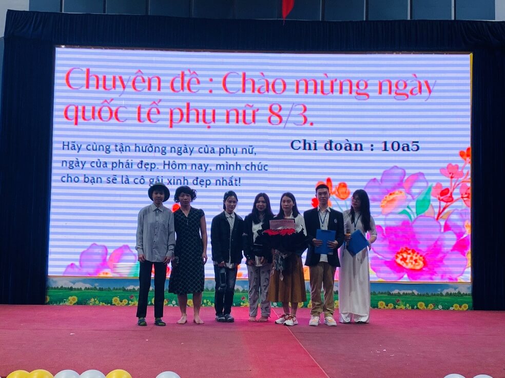 Tiếp theo, chúng ta sẽ cùng đến với chuyên đề của chi đoàn 10A5 với chủ đề: “CHÀO MỪNG NGÀY QUỐC TẾ PHỤ NỮ 8/3”. Ngày 8/3 hằng năm được biết đến là “Ngày Quốc tế Phụ nữ” đây là ngày kỷ cuộc đấu tranh đòi các quyền lợi của phụ nữ và trẻ em trên toàn thế giới và cho đến ngày nay đây còn là dịp để tôn vinh, thể hiện sự yêu thương và trân trọng phái đẹp. Với chủ đề quen thuộc, chi đoàn 10A5 đã biến tấu chuyên đề của mình thông qua những nội dung thú vị hấp dẫn, lôi cuốn thầy cô và các bạn học sinh.