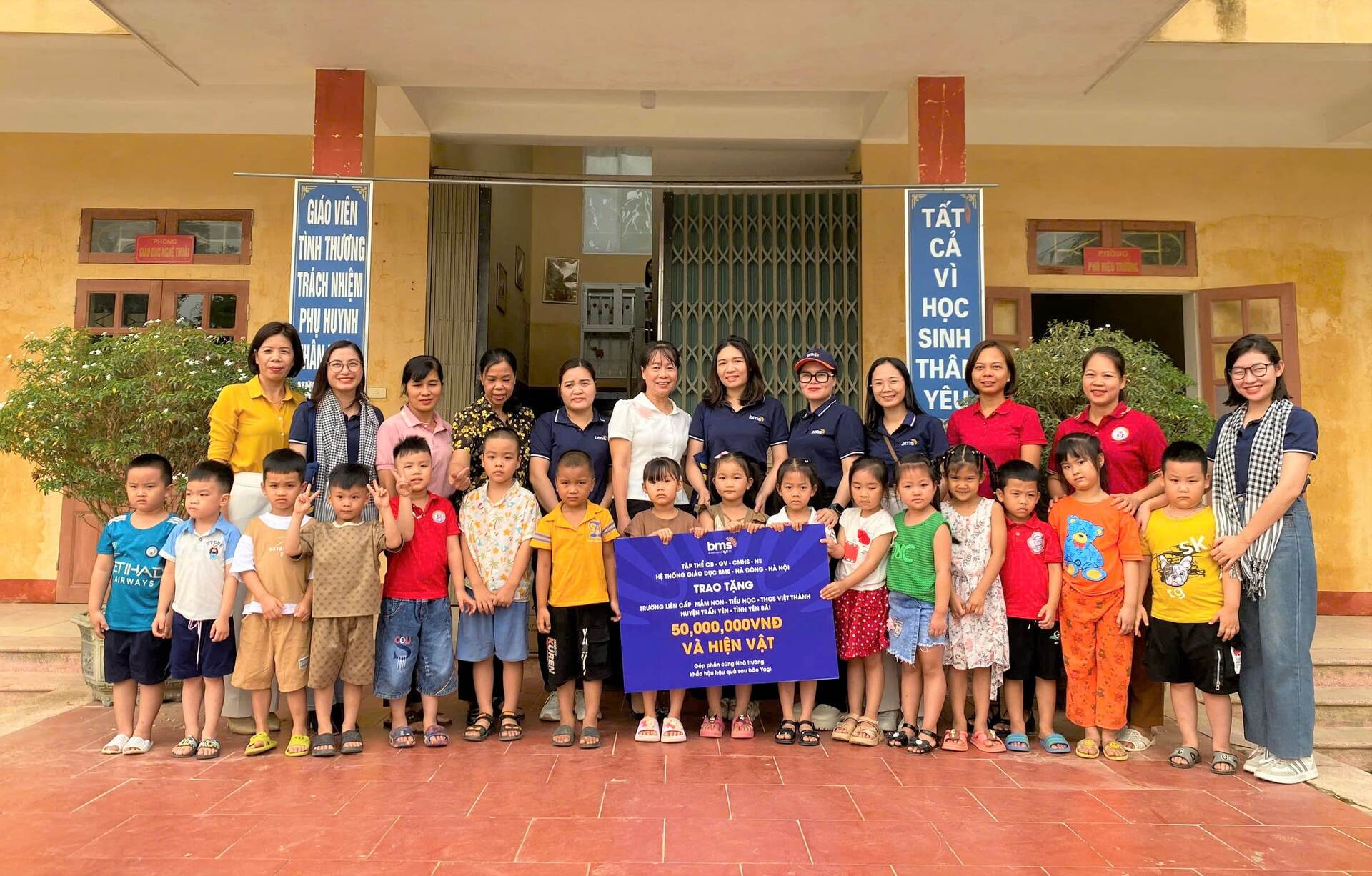 Thầy cô giáo BMS trao những phần quà ý nghĩa đến các học sinh tại Yên Bái