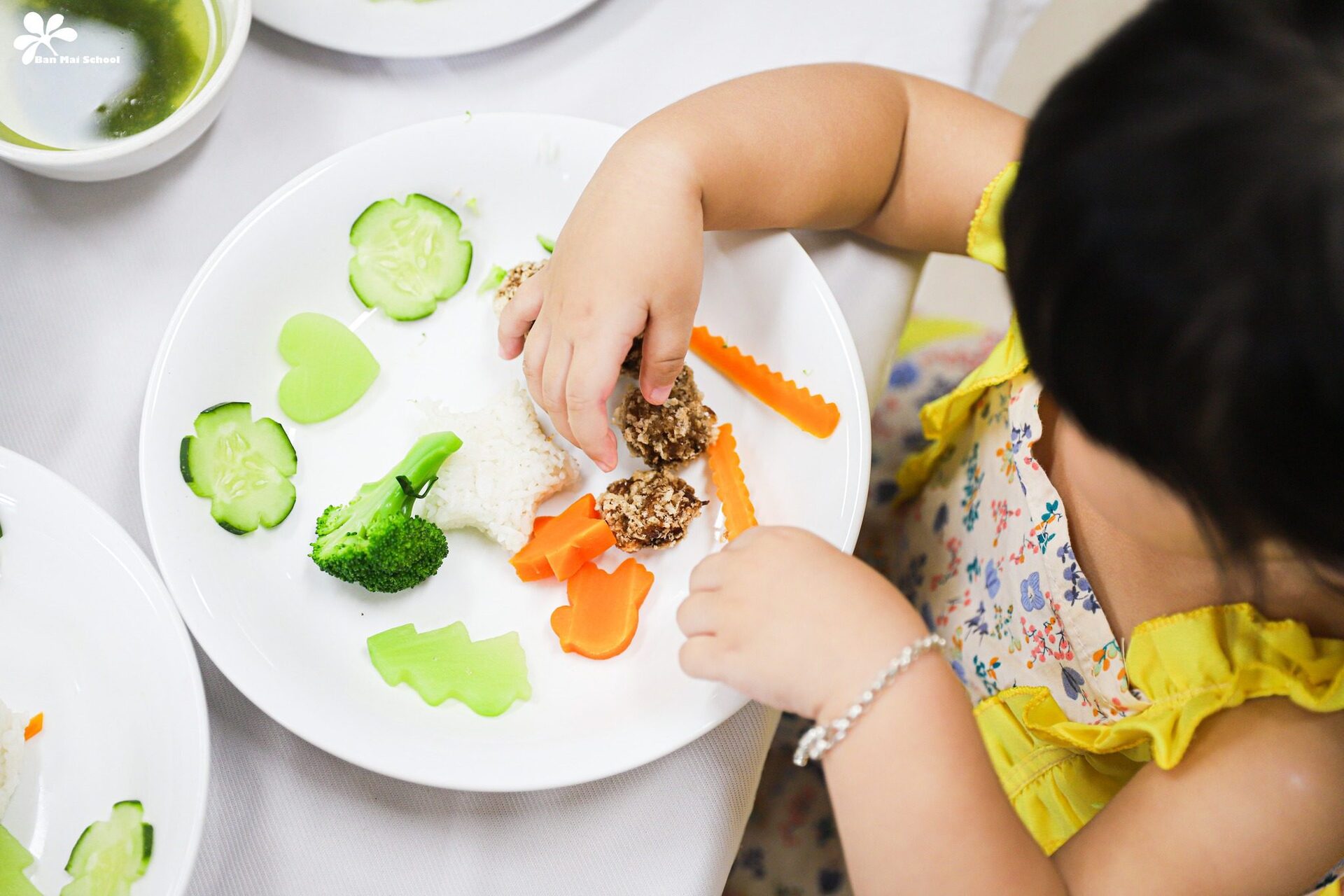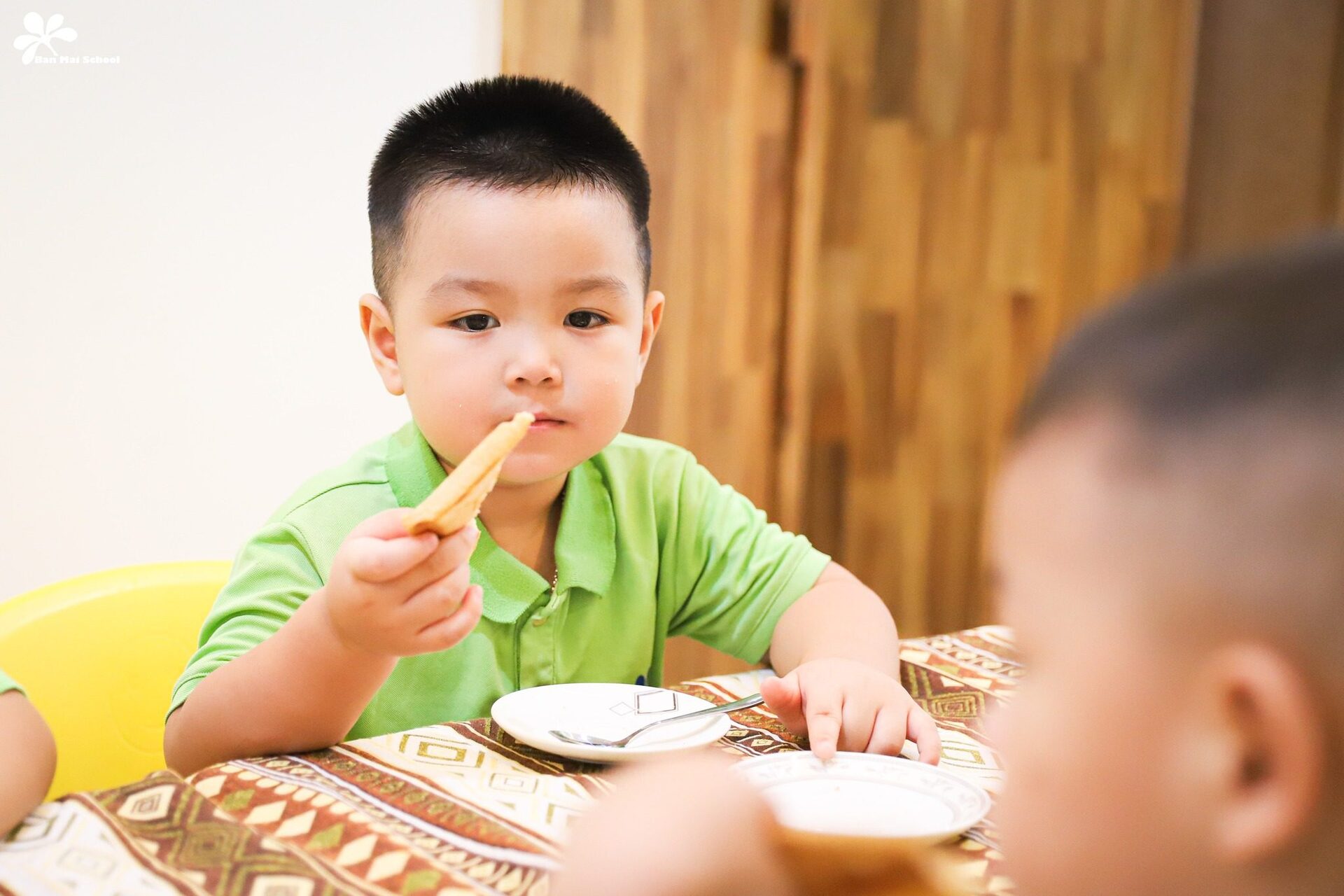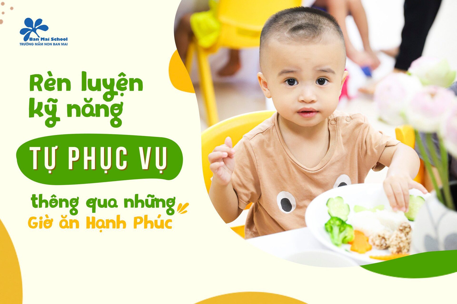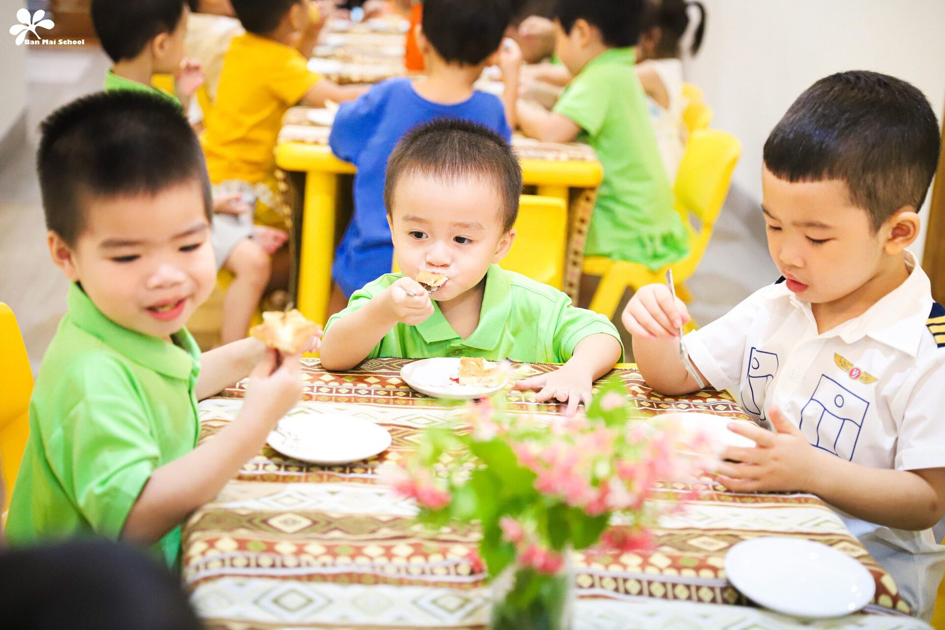 Bên cạnh chế độ dinh dưỡng được xây dựng chuyên biệt cho trẻ ở từng lứa tuổi, những giờ ăn hạnh phúc tại Ban Mai cũng là dịp để BMSers hình thành thói quen và kỹ năng tự phục vụ.