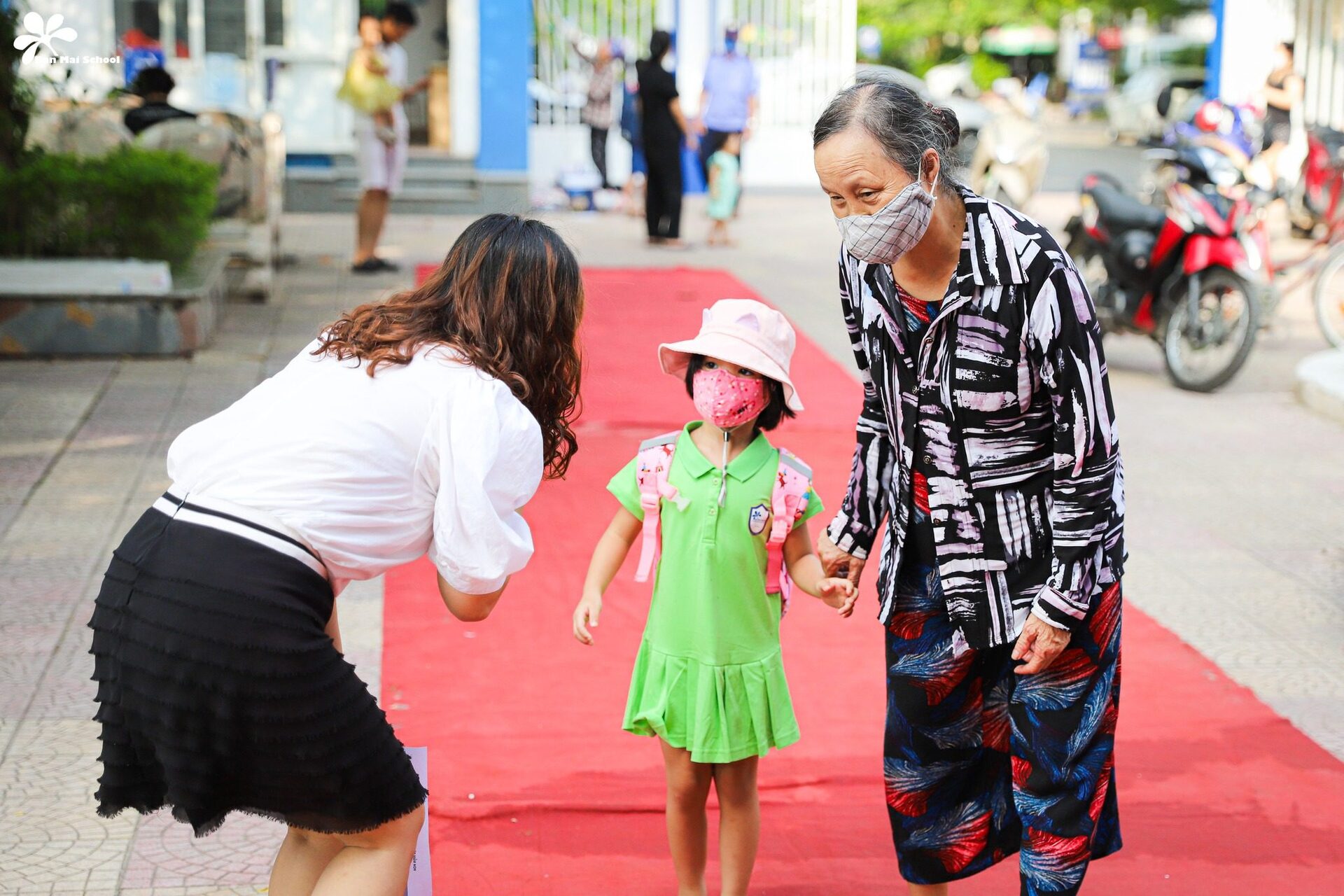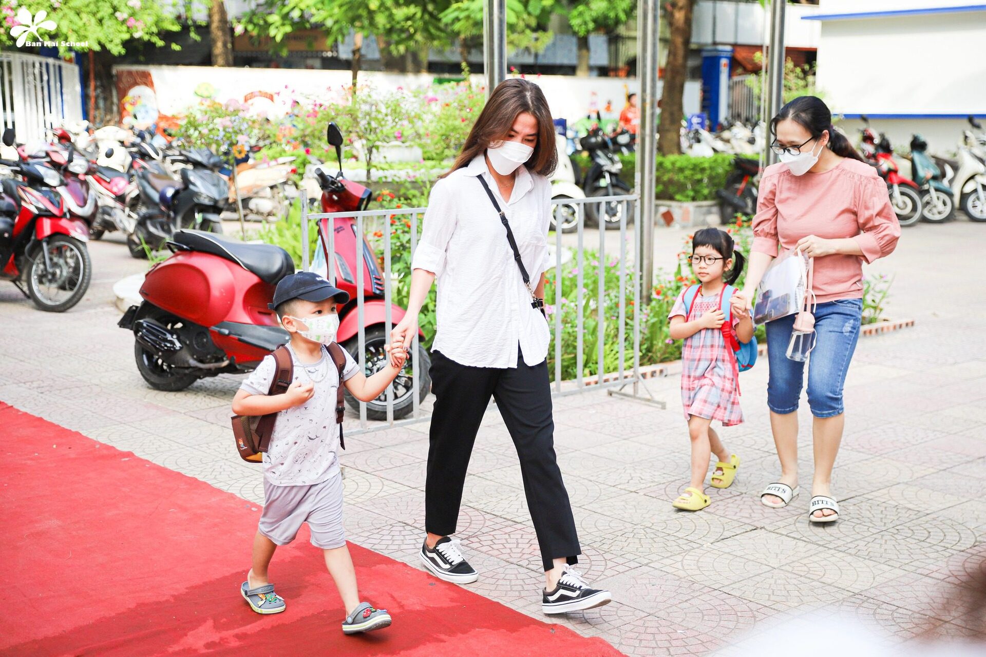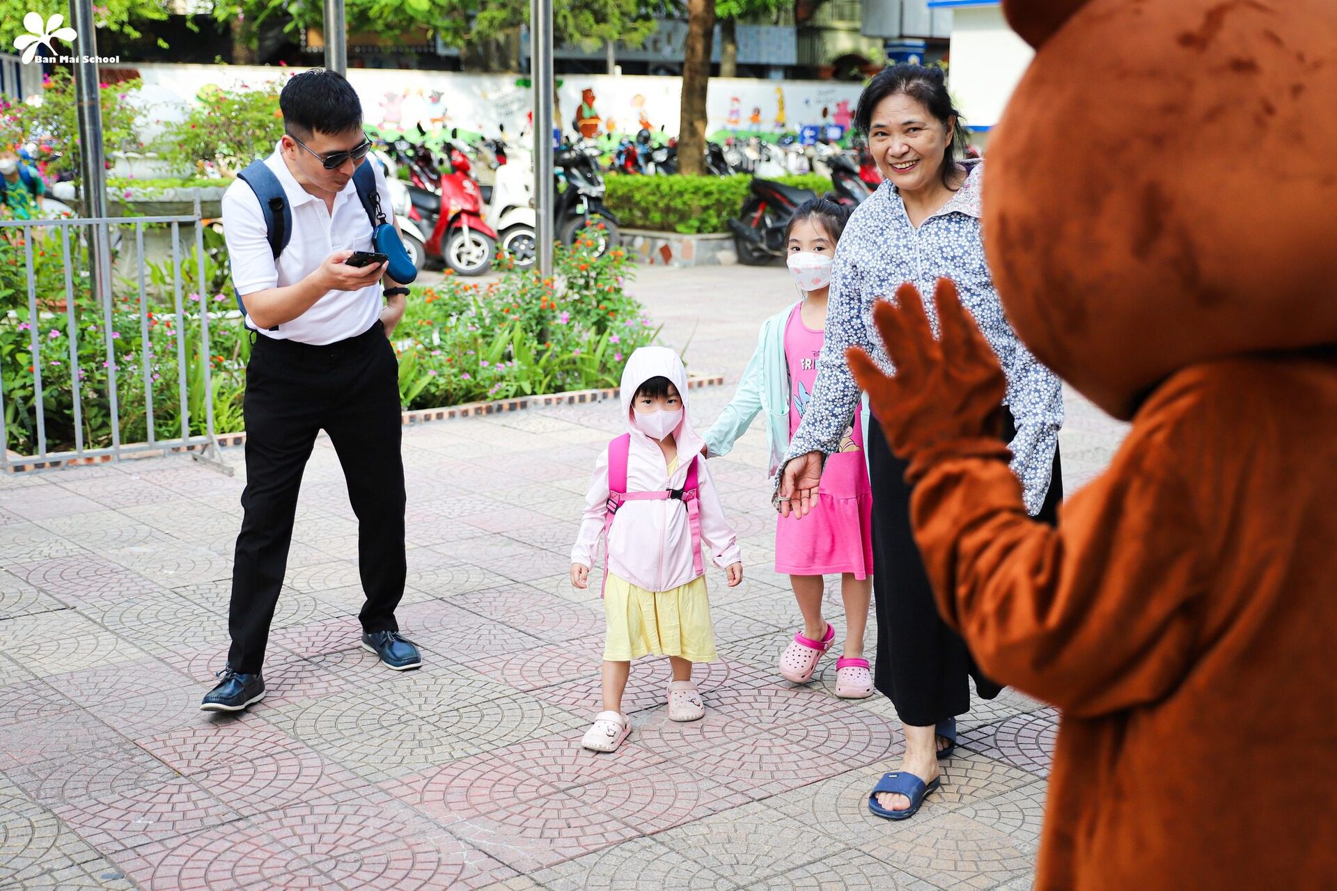 BMSers háo hức khi được thầy cô cùng các nhân vật hoạt hình ngộ nghĩnh chào đón từ cổng trường. Lon ton theo ba mẹ lên lớp, các con càng hạnh phúc hơn nữa trước sự chuẩn bị chu đáo của các cô giáo và những không gian được thay áo mới đẹp lung linh.