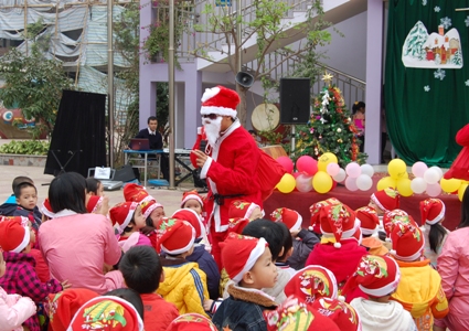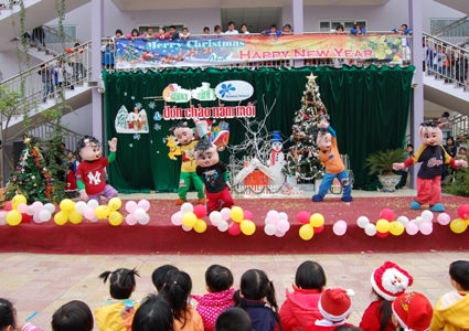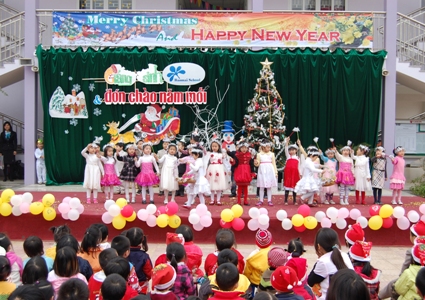 8h30 Chương trình nghệ thuật ” Đón Noel và năm mới ” bắt đầu. Sự chuẩn bị công phu của các cô giáo và các diễn viên nhí của trường đã đem đến những bất ngờ thú vị và bạn nào cũng phải trầm trồ khen ngợi. Dưới đây là một số hình ảnh về Lễ Noel và đón Chào năm mới