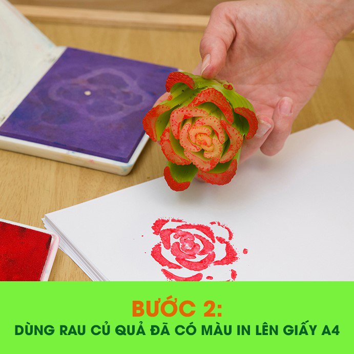 Bước 2: Dùng rau củ đã có màu in lên giấy A4;