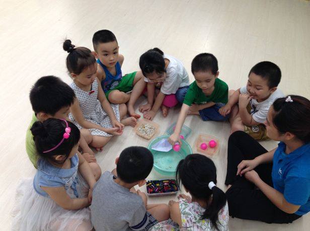 Chúng tớ được chia về thành các nhóm nhỏ và còn được cô giáo chuẩn bị cho một chậu nước rất là to.