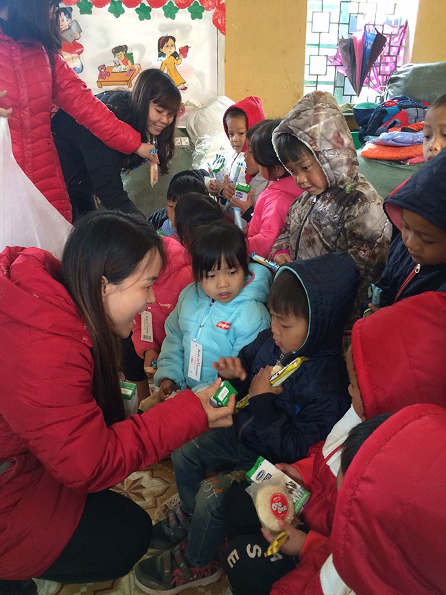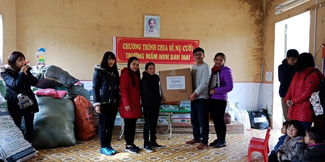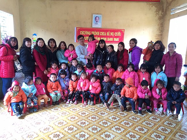 Sáng ngày 18/1, trường Mầm non Ban Mai đã trao tận tay 185 chiếc áo phao mới, 185 bộ khăn mũ len, 555 đôi tất, 58 thùng sữa tươi, bánh kẹo, giầy dép và nhiều vật phẩm cần thiết khác cho các em nhỏ ở trường Mầm non Chế Tạo.