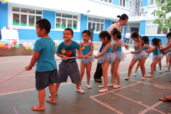 Phần thi “Chúng cháu vui khỏe” đã giúp BGK đưa ra kết quả dễ dàng hơn bởi các đội tham gia thi các trò chơi và có kết quả ngay. Với các trò chơi “Sút bóng vào lưới”, “Kéo co” các bé đã thể hiện mình không chỉ khéo léo mà còn rất khỏe mạnh và có tinh thần đồng đội rất cao nữa. Lớp Kiity 7 còn sút trúng 20/20 trái bóng vào lưới nữa, một số điểm tuyệt đối cho lớp Kitty 7.
