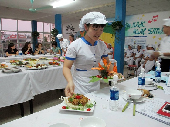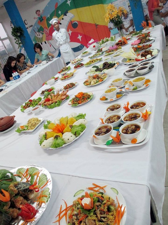 Tại “Hội thi ẩm thực – Nhân viên nuôi giỏi”, mỗi nhân viên chế biến 02 món ăn (trong đó 01 món tự chọn + 01 món yêu cầu. Hội thi đã diễn ra với sự chuẩn bị công phu từ thực đơn đến thiết lập khẩu phần dinh dưỡng hợp lý cho trẻ. Chỉ sau thời gian ngắn, các nhân viên bếp đã trổ tài chế biến những món ăn áp dụng phục vụ bữa chính và bữa phụ cho trẻ không những thơm ngon, hợp khẩu vị của trẻ mà còn được trang trí, trưng bày rất đẹp mắt và hấp dẫn. Không chỉ chuẩn bị món ăn mà mỗi nhân viên đều có giáo án riêng và phải trình bày về công thức, cách chế biến cũng như ý nghĩa món ăn mà mình mang đến với Hội thi.