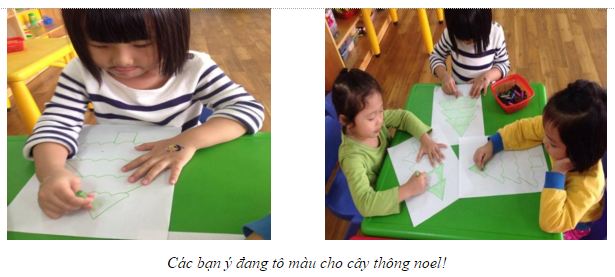 Trong những giấc ngủ say nồng của trẻ thơ sẽ còn mãi giấc mơ đẹp về ông già Nôel hiền từ nhân hậu. Ông già Noel chính là thần tượng và là bao ước mơ của trẻ em trên toàn thế giới, các em luôn cố gắng nổ lực học tập thật giỏi, ngoan ngoãn vâng lời Ông Bà, Cha Mẹ, Thầy cô giáo với hy vọng Ông già Noel sẽ ban tặng phần thưởng cho chính mình bằng những món quà yêu thích như đã từng ao ước mong đợi trong ngày Giáng Sinh. Các con học sinh cũng cùng cô giáo tô màu và trang trí cho cây thông noel rất đẹp.