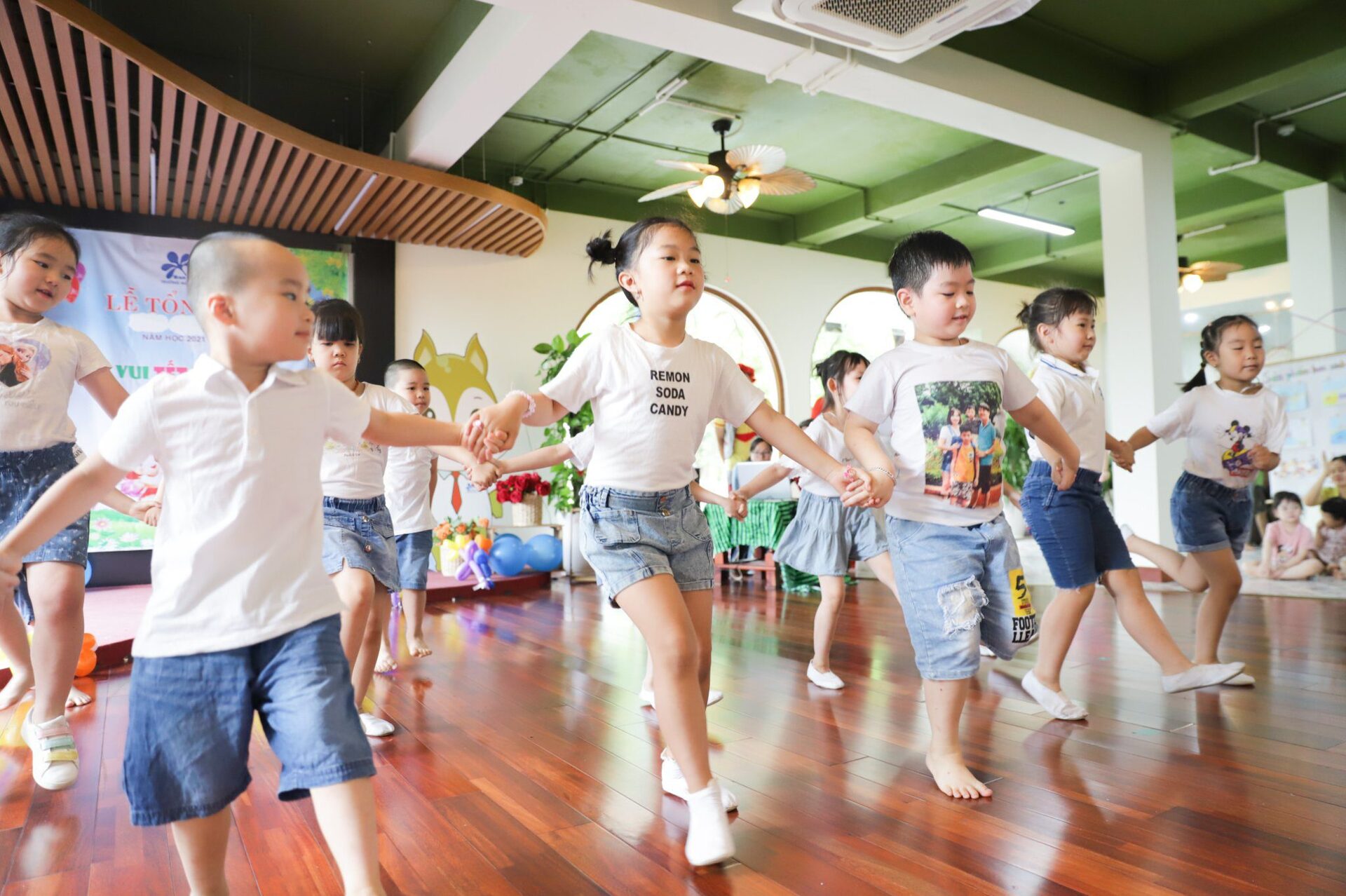 BMSers từ khắp các khối Donald, Mickey, Kitty, Misa đã lần lượt trình diễn những tiết mục đặc sắc trên sân khấu trong sự cổ vũ nhiệt tình của các cô giáo và cha mẹ thân yêu. Các con háo hức đón xem các bạn nhảy múa trên sân khấu, đánh dấu những kỷ niệm đẹp kết thúc một năm học vô cùng đặc biệt.