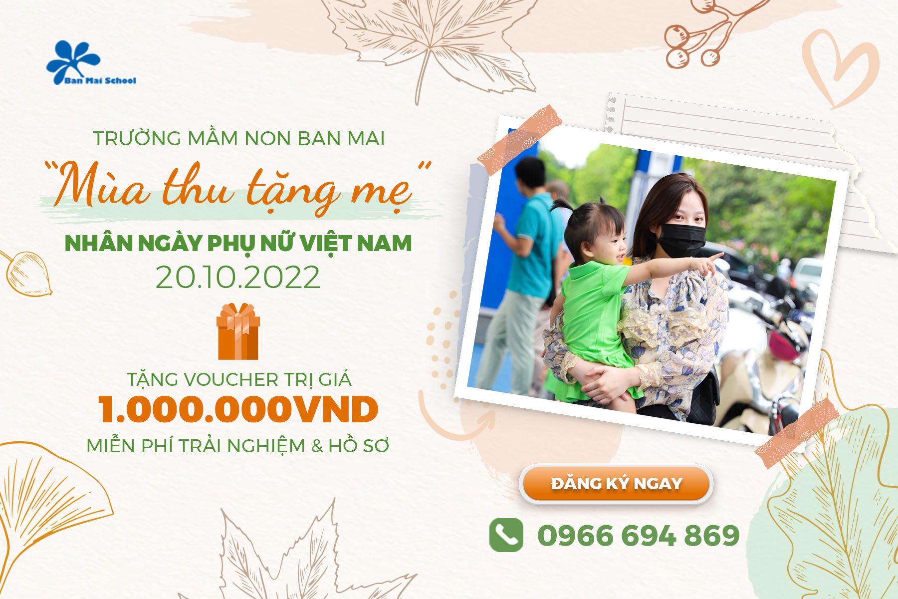 Trân trọng dành tặng Quý CMHS chính sách ưu đãi “MÙA THU TẶNG MẸ” khi mẹ đăng ký nhập học ngay hôm nay: