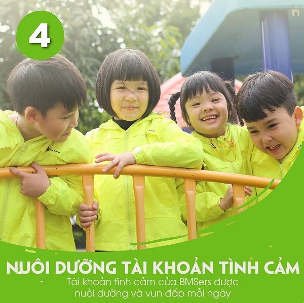 BMSers được rèn luyện trong môi trường an toàn cả về thể chất lẫn tinh thần để phát huy hết năng lực tự thân. BMSers được trải nghiệm hoạt động Gymkids trong không gian ngôn ngữ tiếng Anh để phát triển năng lực tư duy toàn cầu. Mỗi bữa ăn tại Ban Mai đều đảm bảo dinh dưỡng, an toàn; đồng thời, BMSers cũng được khám sức khỏe định kỳ 3 lần/năm.