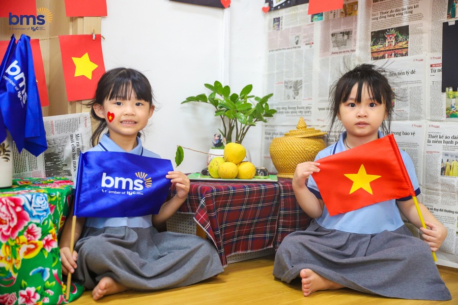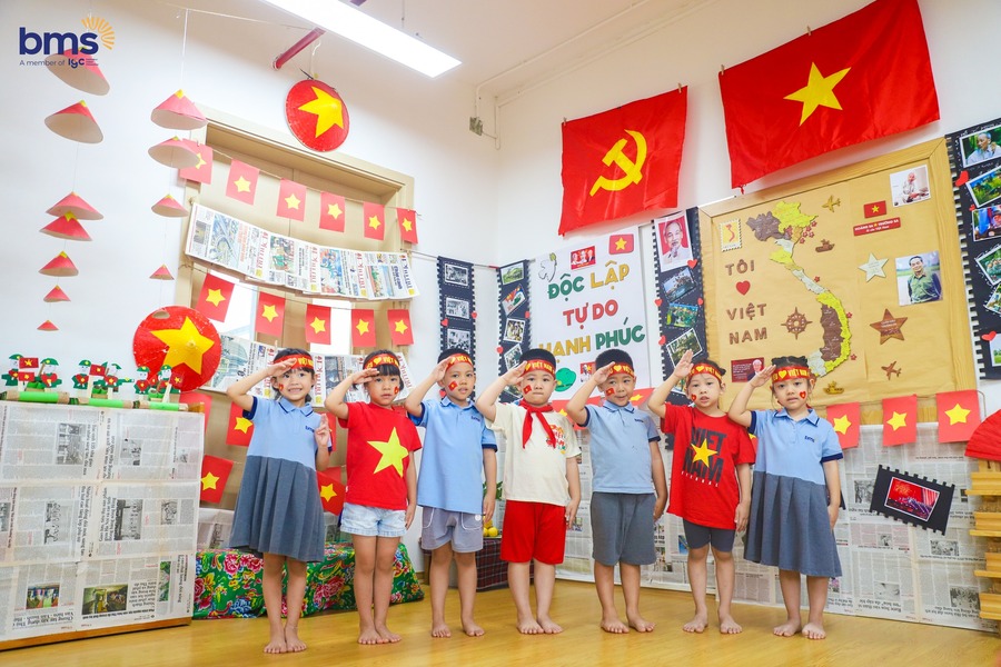 Các BMSer nhí, dù còn nhỏ đã có cơ hội chạm vào “hơi thở” thiêng liêng của ngày Lễ trọng đại dân tộc qua những hoạt động ý nghĩa. Cùng cô giáo làm cờ, dán sao, cắt chữ, tô màu những biểu tượng đặc trưng của đất nước, các con như trở thành những “nghệ nhân nhí” sáng tạo nên sắc màu Tổ quốc. Hòa cùng không gian là tiếng hát “Ai yêu Bác Hồ Chí Minh hơn thiếu niên nhi đồng” trong trẻo, đầy cảm xúc được ngân vang. Những khoảnh khắc ấy chính là cách tình yêu quê hương được gieo hạt trong mỗi trái tim.
