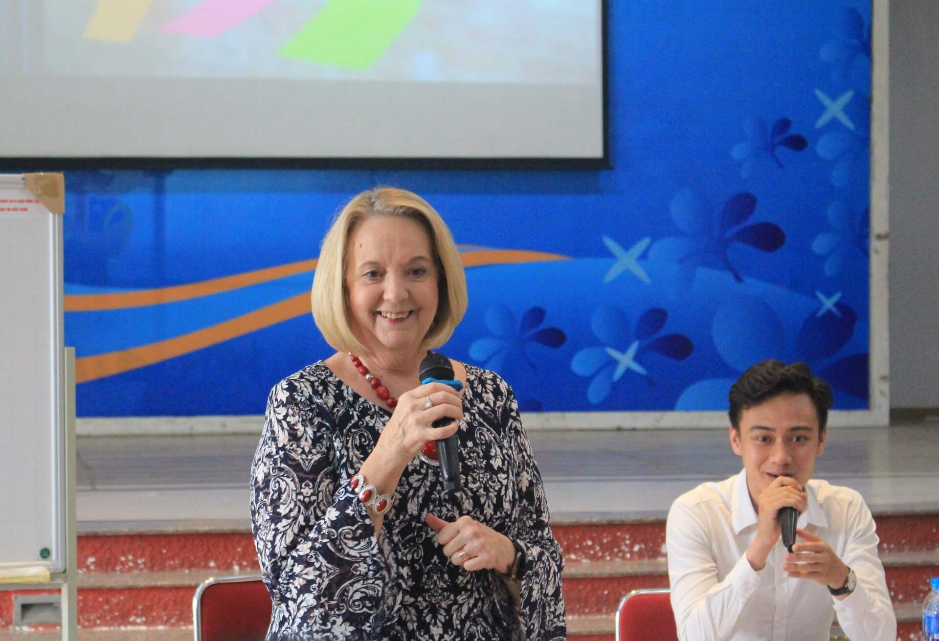 Bà Linda Perkins, chuyên gia giáo dục đến từ Australia khơi gợi cảm hứng, động lực cho các cán bộ, giáo viên của nhà trường bằng cách đặt ra nhiều câu hỏi thú vị.
