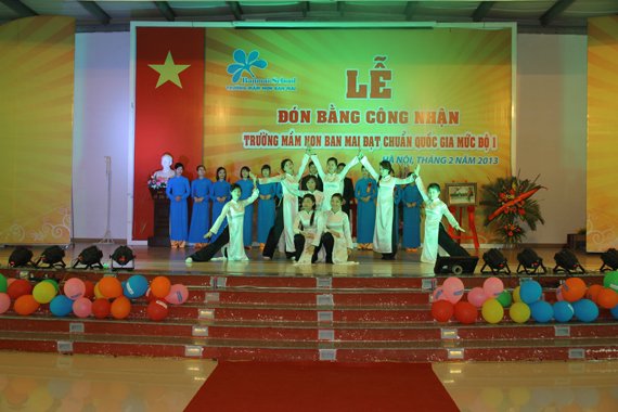 Sáng nay (2/02/2013) trường mầm non Ban Mai đã tổ chức buổi Lễ đón Bằng công nhận trường mầm non Ban Mai đạt chuẩn Quốc gia mức độ I. Trong làn nắng mới ấm áp, những nụ đào hồng chúm chím cười, những bông mai vàng đua nhau khoe sắc- Ban Mai được trang hoàng với những băng rôn và rực rỡ cờ hoa. Các cô giáo và các bé hôm nay cũng xinh tươi hơn làm cho không khí mùa xuân của Ban Mai thêm xinh đẹp. Sau bao nhiêu khó khăn vất vả với cả sự cố gắng không ngừng thì ngày mong đợi đã đến. Vẫn biết thế mà sao cứ thấy hồi hộp và xúc động lạ.