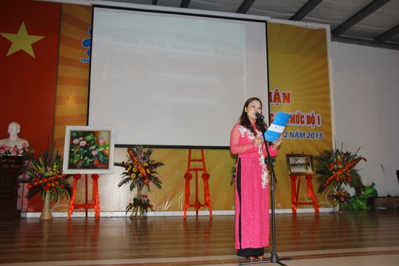 Ngay sau đó- Cô Phạm Bích Liên- Hiệu trưởng nhà trường báo cáo quá trình xây dựng trường Mầm non Ban Mai đạt chuẩn Quốc gia. Bản báo cáo vừa tóm tắt lại một cách đầy đủ nhưng ghi dấu lại đầy đủ quá trình xây dựng trường chuẩn của Ban Mai bằng những hình ảnh đẹp nhất- ấn tượng nhất