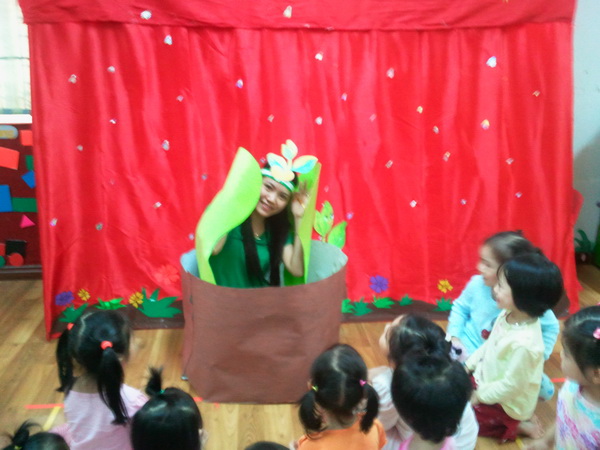 Với phương trâm lấy trẻ làm trung tâm, cô giáo chỉ là người định hướng cho trẻ tiếp cận với các kiến thức một cách chủ động và tích cực như hoạt động khám phá khoa học của cô giáo Nguyễn Thị Vân – lớp Misa 1 về các loại rau củ quả hoặc hoạt động khám phá các loại quả của cô giáo Đỗ Thị Thắm lớp Mickey 4