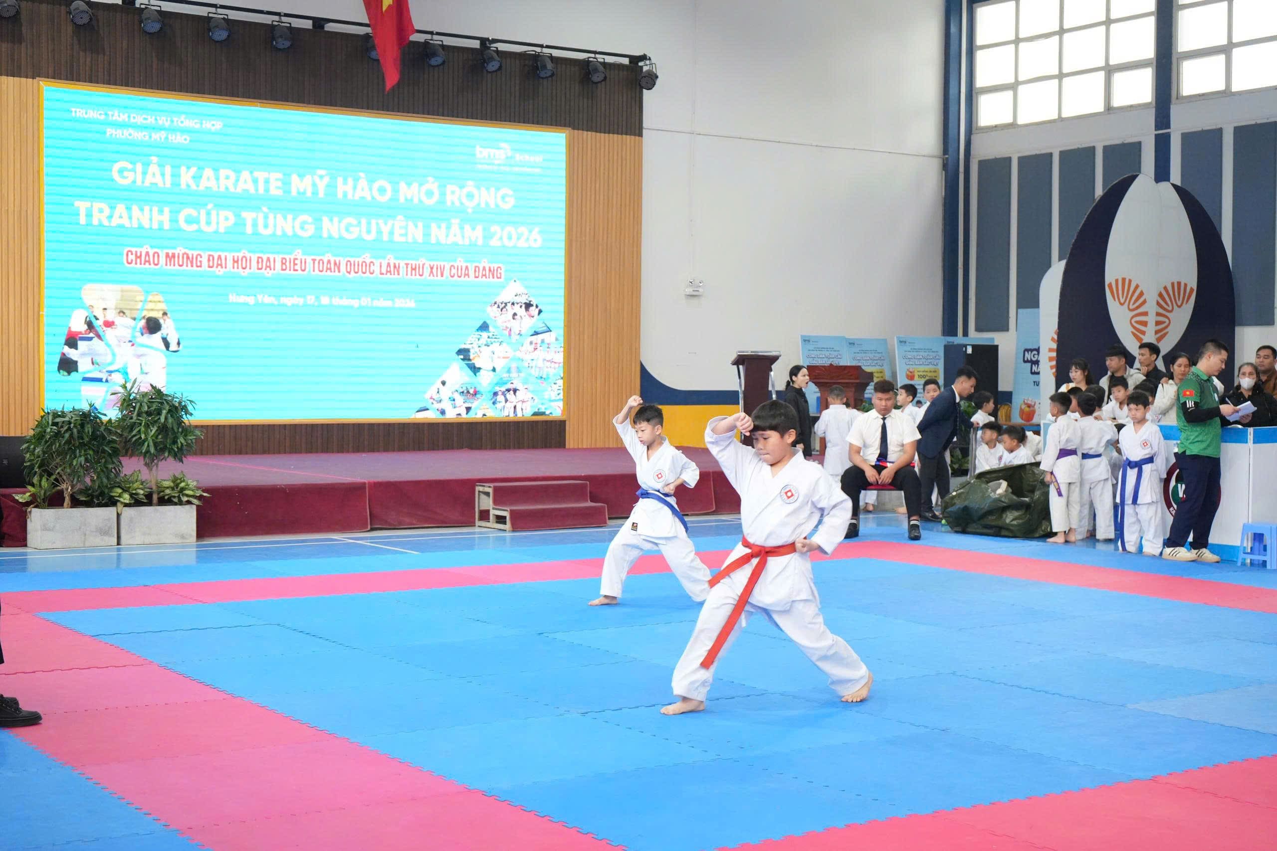 Giải Karate Mỹ Hào mở rộng tranh Cúp Tùng Nguyên năm 2026 đã diễn ra trong không khí sôi nổi, quy tụ đông đảo vận động viên trẻ đến từ nhiều câu lạc bộ và đơn vị đào tạo trên địa bàn. Đây không chỉ là một giải đấu thể thao phong trào, còn là sân chơi ý nghĩa, góp phần lan tỏa tinh thần rèn luyện thể chất, ý chí bền bỉ và bản lĩnh thi đấu cho thế hệ trẻ.