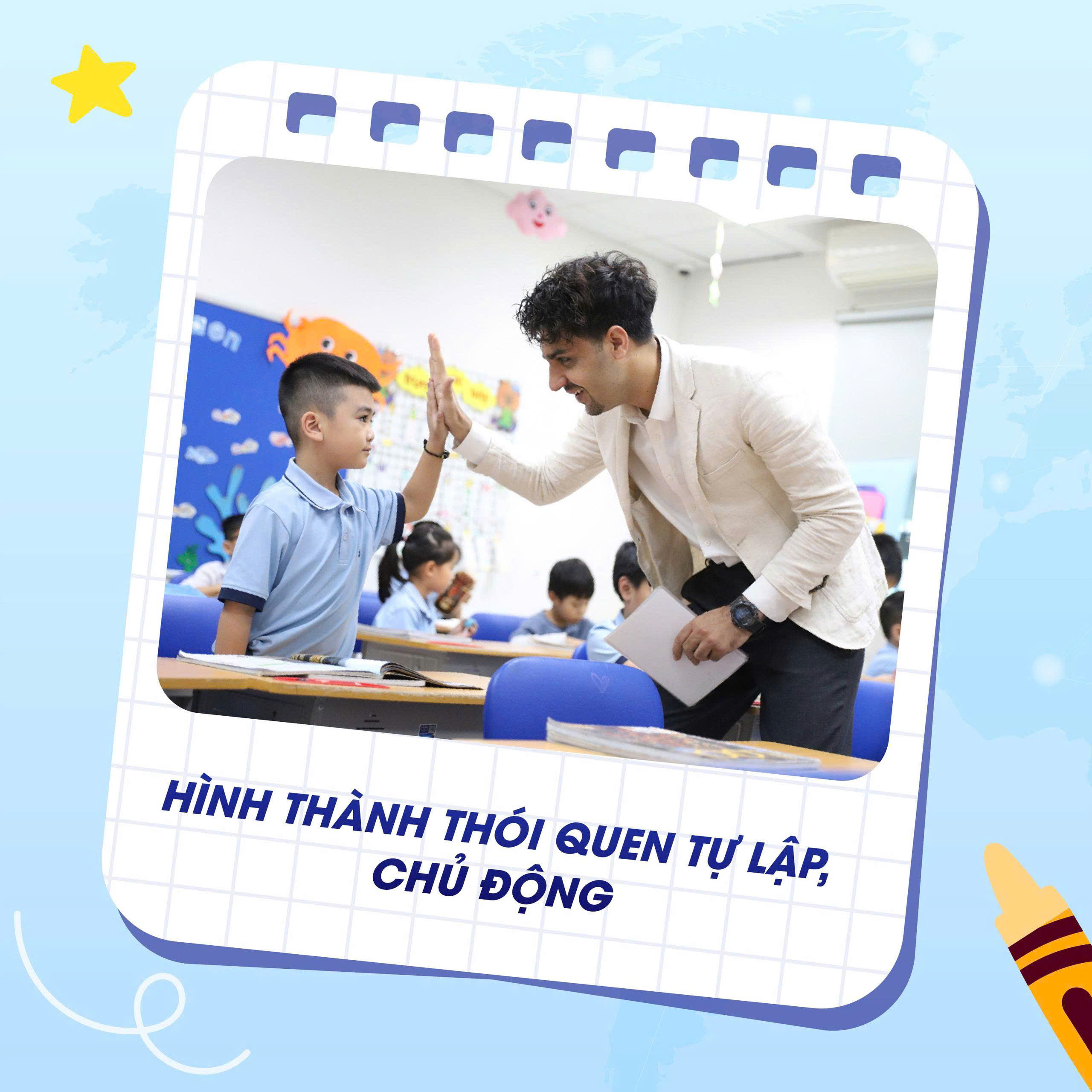 Chương trình chú trọng giáo dục giá trị sống, giúp trẻ biết quan tâm đến bạn bè, thầy cô và những người xung quanh; từ đó hình thành thái độ tích cực và nhân ái trong môi trường học đường.