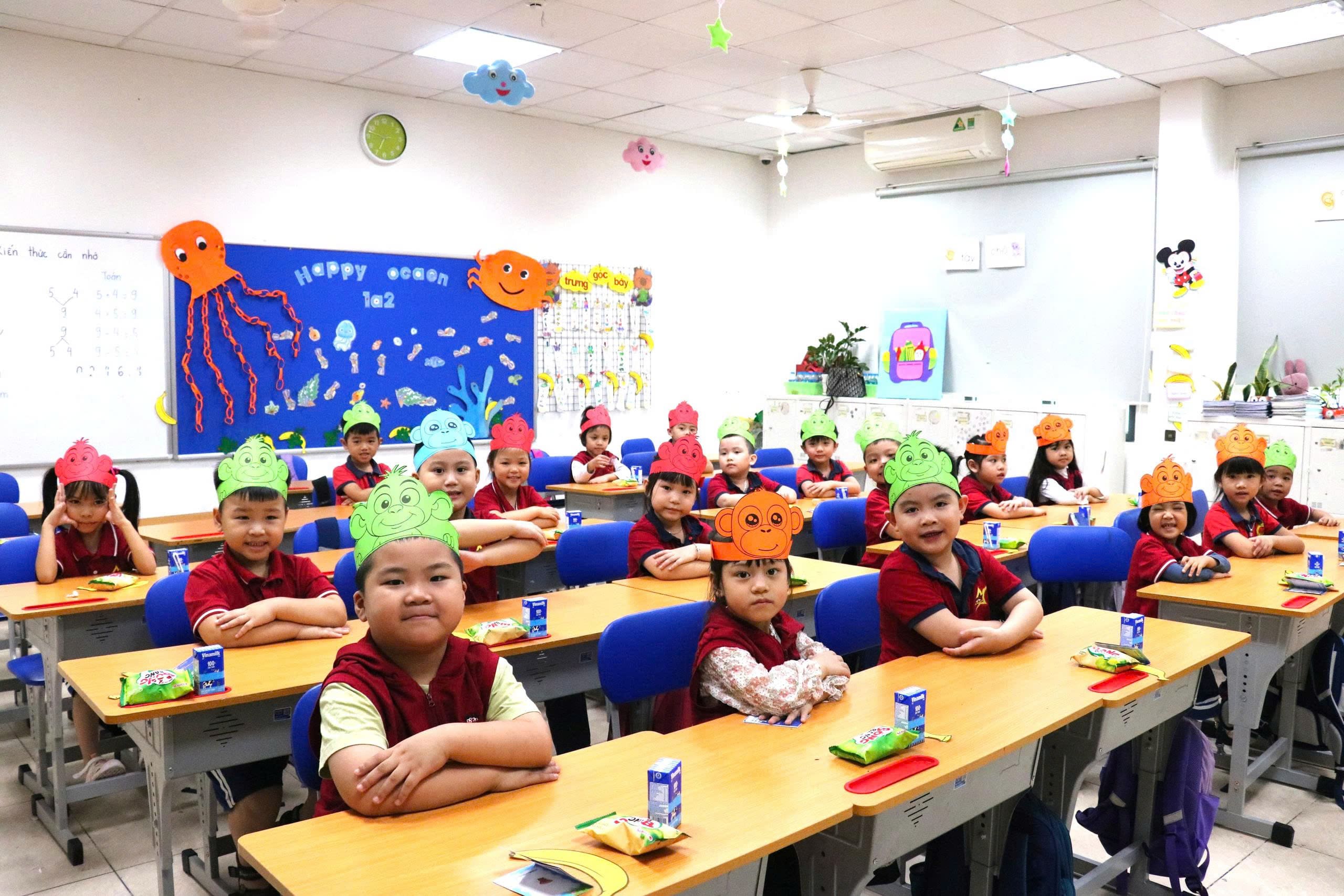 Ánh mắt chăm chú, bàn tay giơ cao để trả lời thể hiện tinh thần ham học hỏi tự nhiên của trẻ thơ. Các con được khuyến khích đặt câu hỏi, tự suy nghĩ và chia sẻ ý kiến của mình. Từ những điều tưởng chừng đơn giản, các bé dần hình thành khả năng tư duy độc lập, sự tập trung và kỹ năng hợp tác trong học tập. Những yếu tố quan trọng trong việc phát triển tri thức lâu dài.