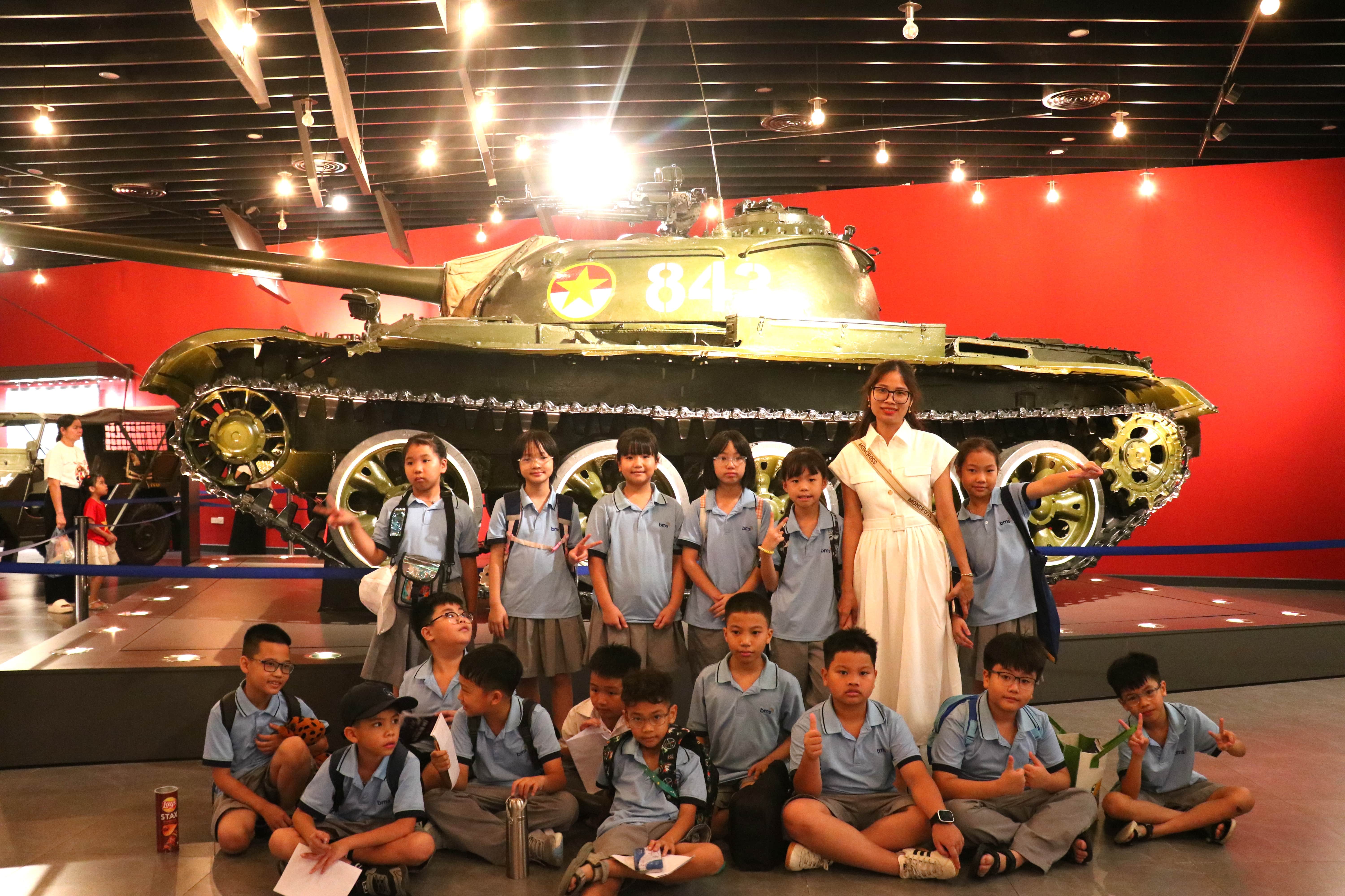 Sáng ngày 16/10/2025, học sinh khối Tiểu học BMS Hưng Yên đã có cơ hội tham gia một buổi học vô cùng đặc biệt tại Bảo tàng Lịch sử Quân sự Việt Nam – nơi lưu giữ những dấu ấn hào hùng của dân tộc qua từng thời kỳ. Không còn là tiết học trong lớp với trang vở và bài giảng quen thuộc, hôm nay, các em được bước vào không gian sống động của lịch sử, nơi mỗi hiện vật đều chứa đựng một câu chuyện, một ký ức thiêng liêng về hành trình bảo vệ Tổ quốc.