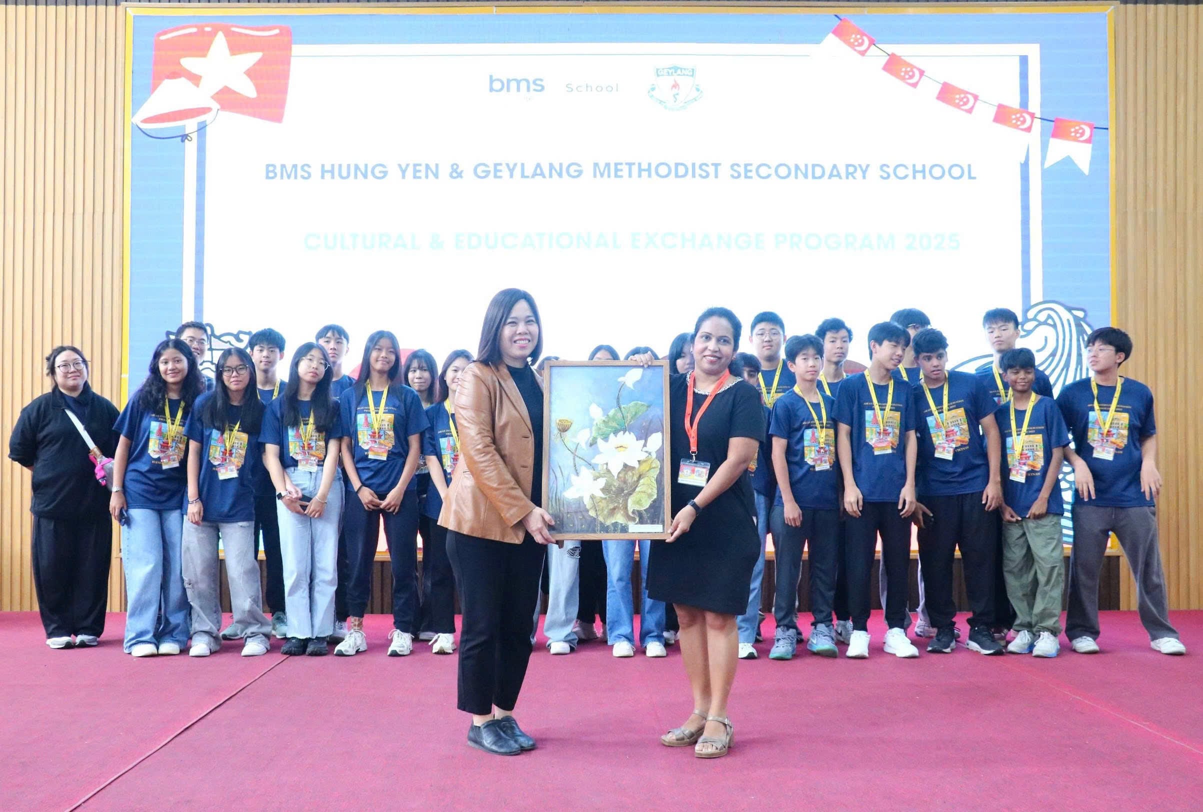 Không chỉ dừng lại ở giao tiếp ngôn ngữ, buổi giao lưu còn là cơ hội để học sinh hai trường tìm hiểu thêm về văn hóa, đời sống học đường và các hoạt động ngoại khóa đặc trưng của Việt Nam và Singapore. Các bạn học sinh Singapore tỏ ra thích thú khi nghe BMSers giới thiệu về những phong tục truyền thống Việt Nam, trong khi học sinh BMS lại chăm chú lắng nghe câu chuyện về hệ thống giáo dục, lễ hội và những điểm đặc sắc của đất nước Singapore hiện đại.