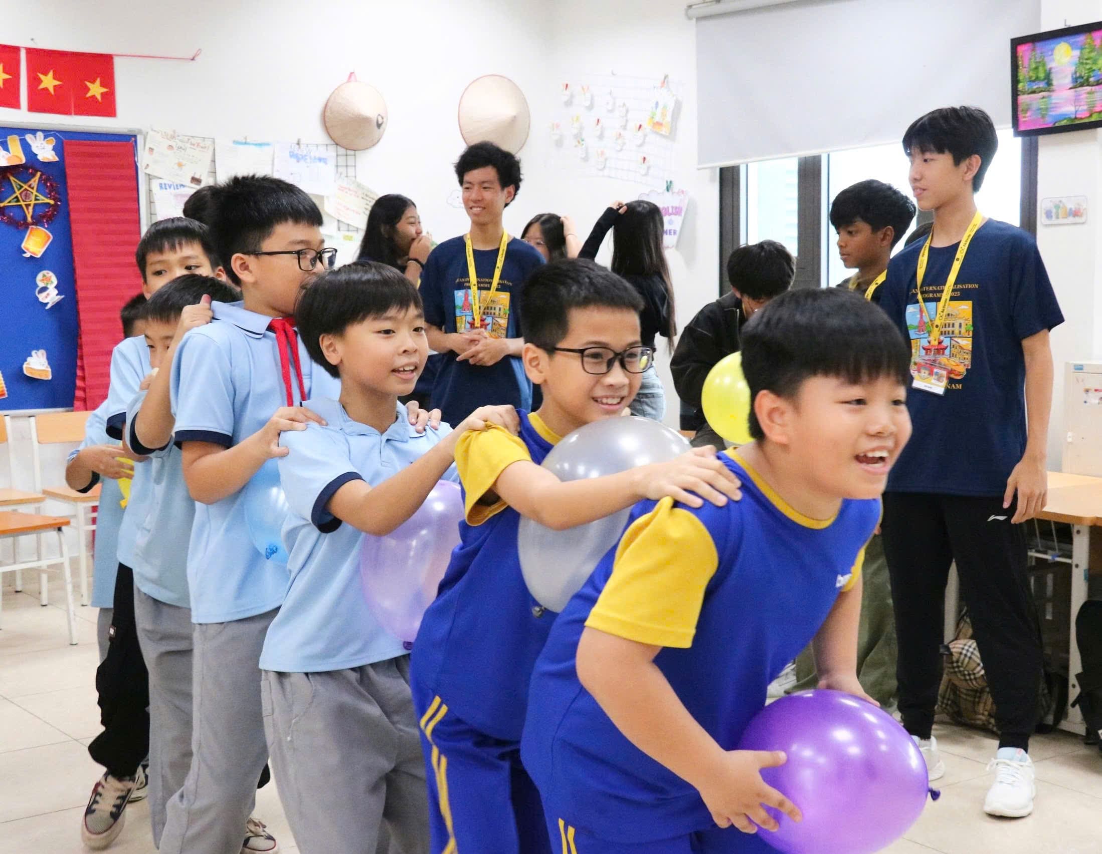 Các em cùng nhau giao lưu văn hóa qua các hoạt động trò chơi tập thể