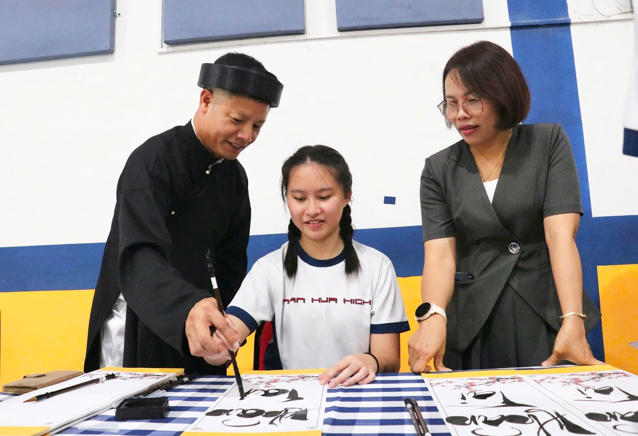 Bên cạnh đó, hoạt động Calligraphy – Thư pháp cũng để lại nhiều ấn tượng sâu sắc. Dưới sự hướng dẫn của thầy cô, các em học sinh được thử viết những nét chữ mềm mại, tinh tế và lắng nghe ý nghĩa sâu xa ẩn chứa trong từng con chữ. Nhiều bạn học sinh Singapore đã bày tỏ sự thích thú khi được tự tay viết chữ, thể hiện sự trân trọng đối với văn hóa Á Đông.