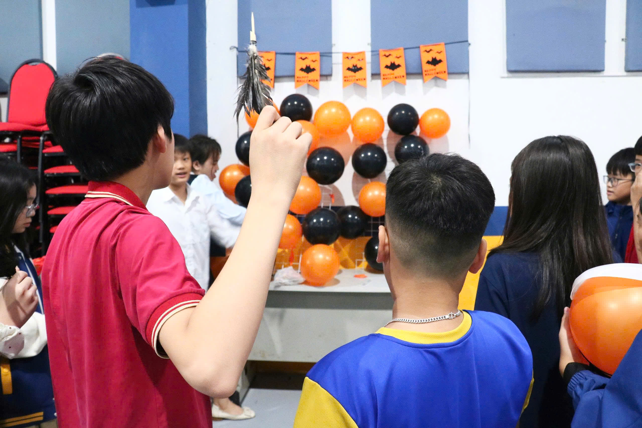 Song song với hoạt động sân khấu là những góc trải nghiệm được thiết kế riêng cho các em học sinh. Tại đây, các trò chơi theo chủ đề Halloween như “ném phi tiêu ma thuật”, “phi bóng bay bí ẩn” … đã thu hút đông đảo các bạn tham gia. Mỗi thử thách vừa mang lại niềm vui vừa giúp các em rèn luyện sự khéo léo, phản xạ nhanh và tinh thần đồng đội.