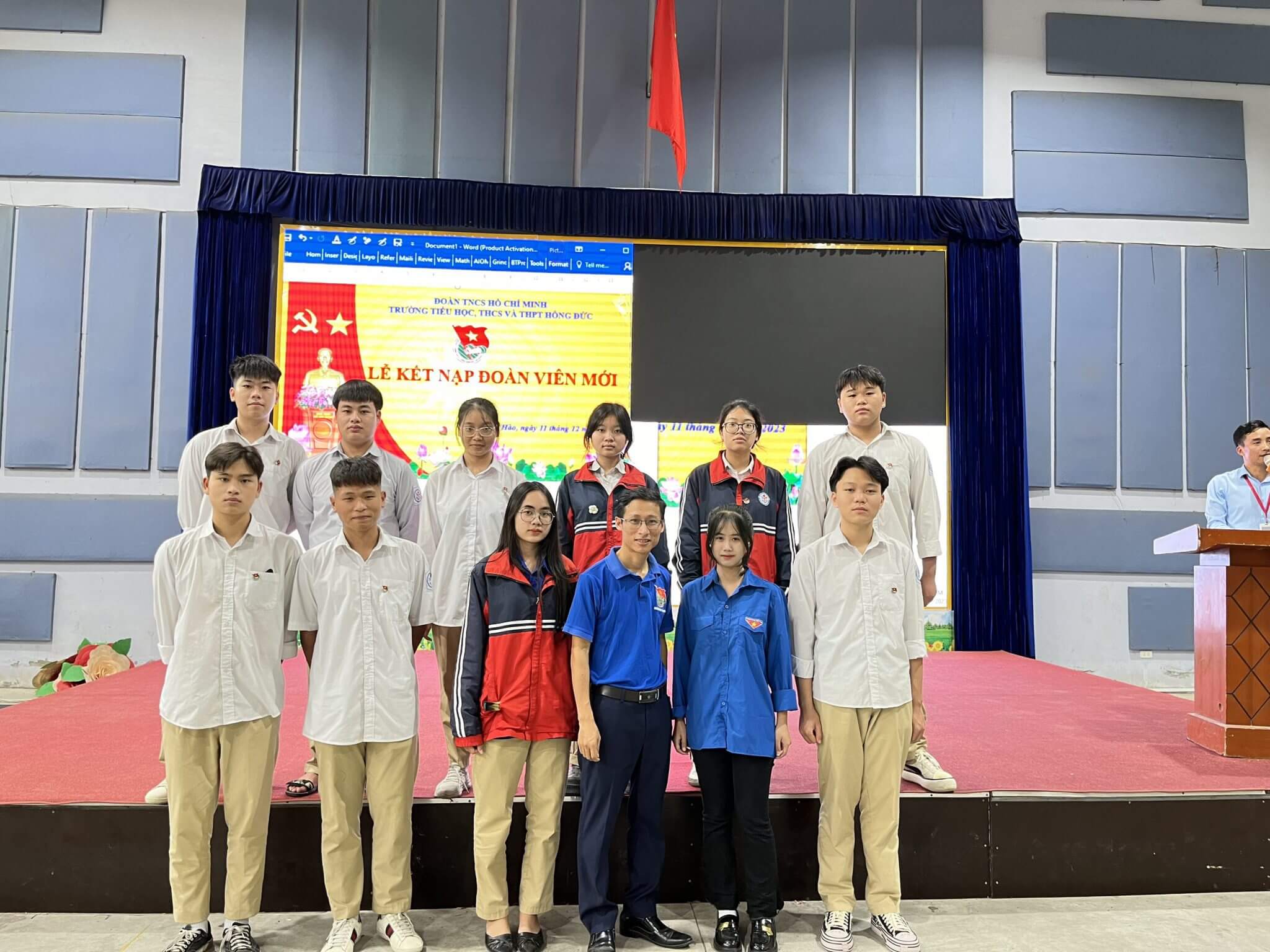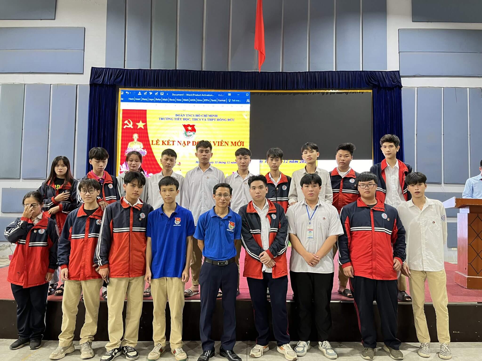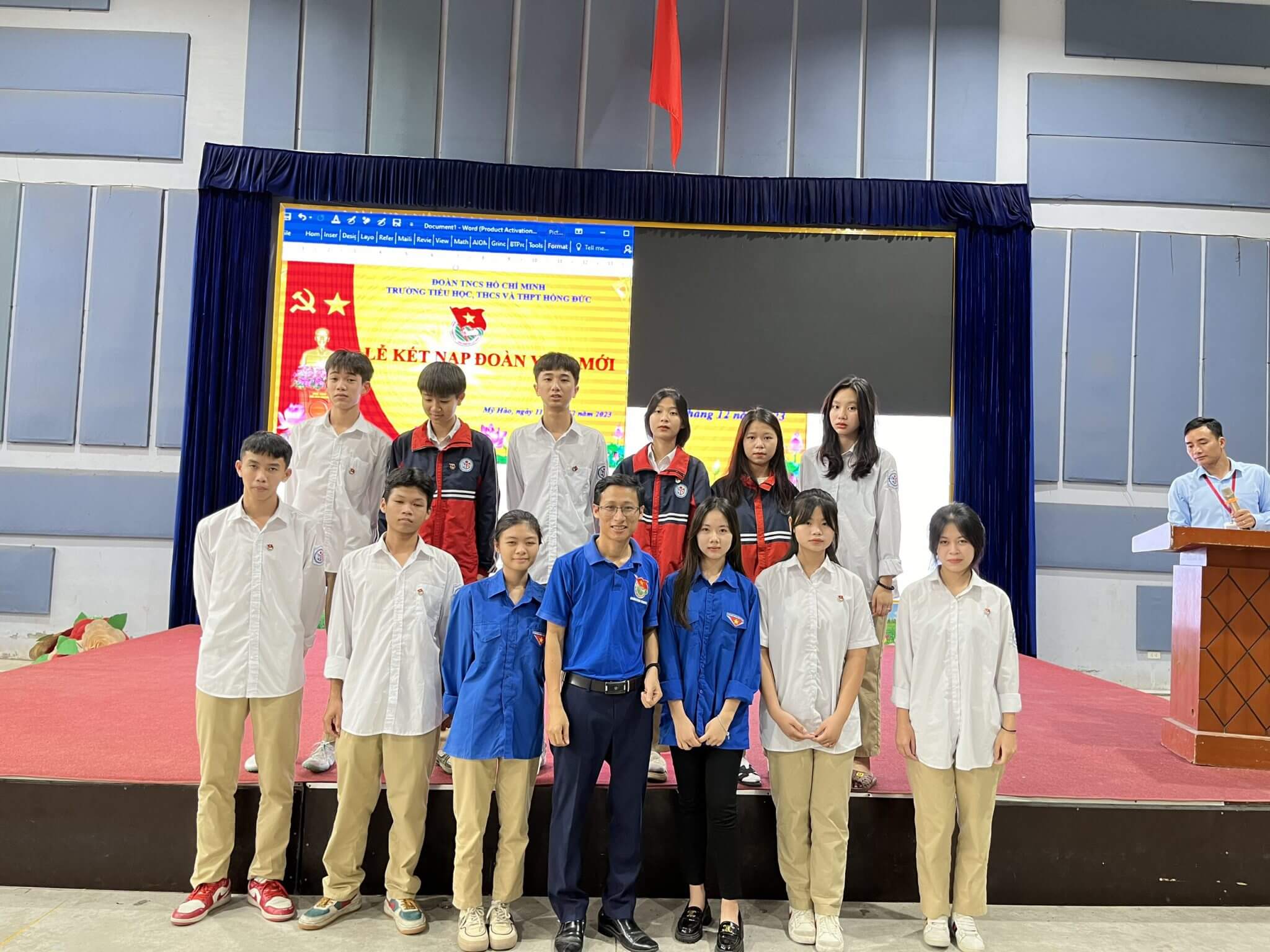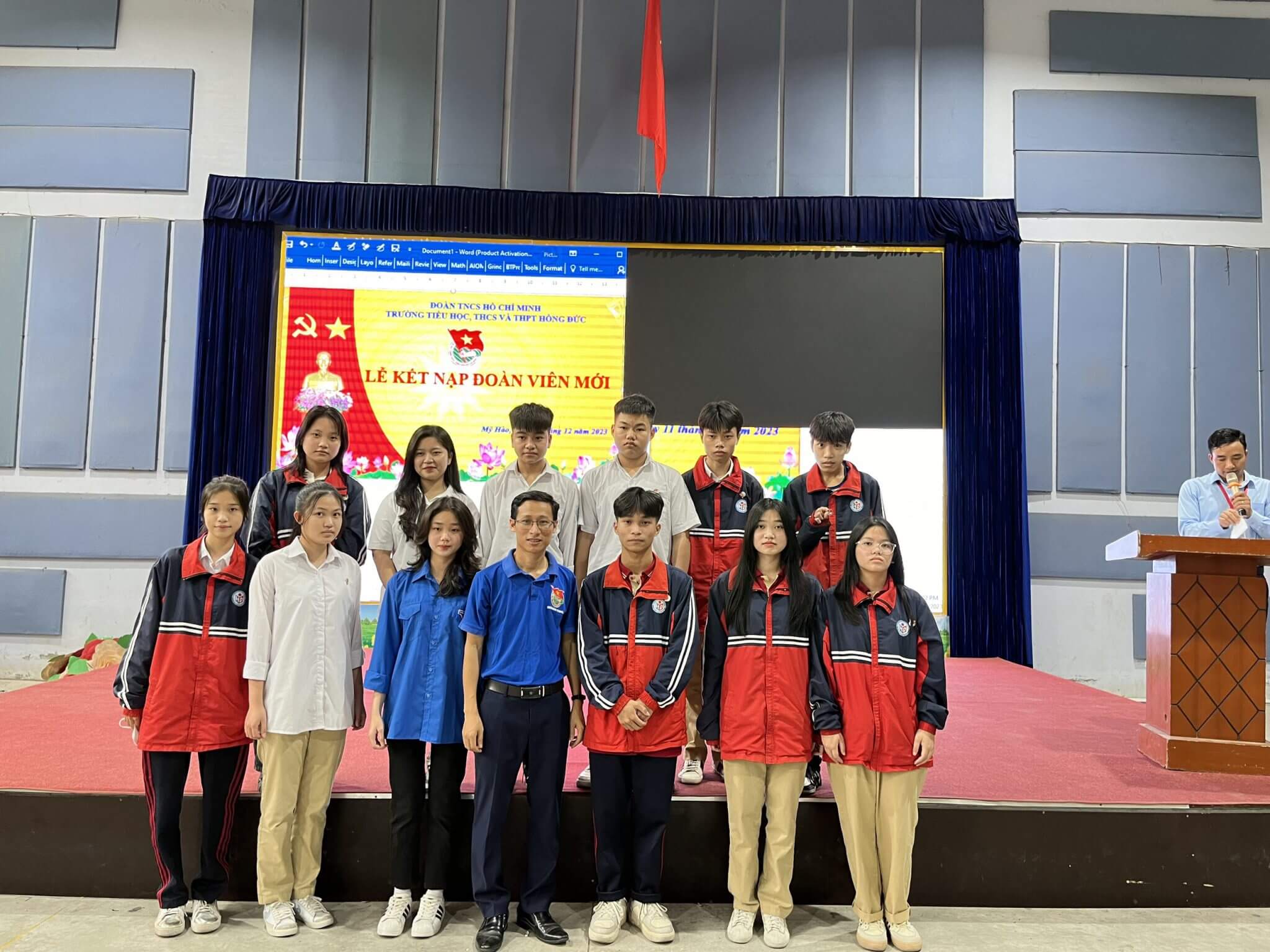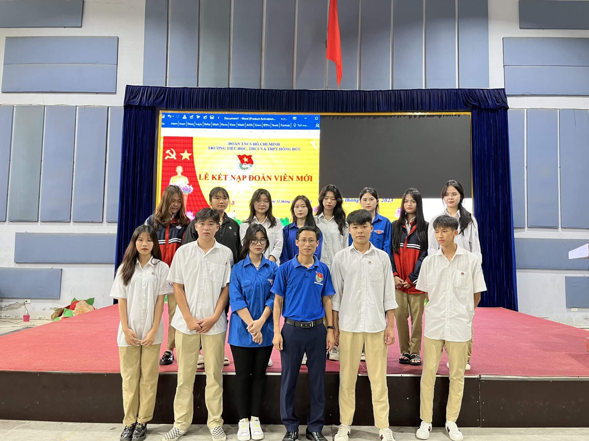 Lễ kết nạp đoàn viên mới là hoạt động ý nghĩa, thiết thực nhằm giáo dục truyền thống yêu nước, lý tưởng cách mạng cho thanh niên góp phần xây dựng tổ chức Đoàn phát triển ngày càng vững mạnh, 90 học sinh của trường TH, THCS và THPT Hồng Đức được kết nạp đoàn viên hôm nay là những thành viên tiêu biểu, các đồng chí đều là những thanh niêu ưu tú, có phẩm chất, đạo đức tốt, có nhiều cố gắng, nỗ lực trong học tập. Tin tưởng rằng 90 đoàn viên thanh niên được kết nạp trong dịp này sẽ thực hiện tốt các nhiệm vụ của người đoàn viên, nỗ lực học tập, rèn luyện phấn đấu để nâng cao hiểu biết, khẳng định được vị trí, vai trò của mình trong tổ chức Đoàn, một tổ chức đại diện cho quyền và lợi ích của thanh thiếu nhi, là “Đội dự bị tin cậy của Đảng”… đáp ứng được những yêu cầu của thanh niên trong thời đại mới, trở thành người có ích, luôn xung kích, tình nguyện đi đầu trong các phong trào của Đoàn tham gia phát triển kinh tế – xã hội, xây dựng và bảo vệ Tổ quốc.