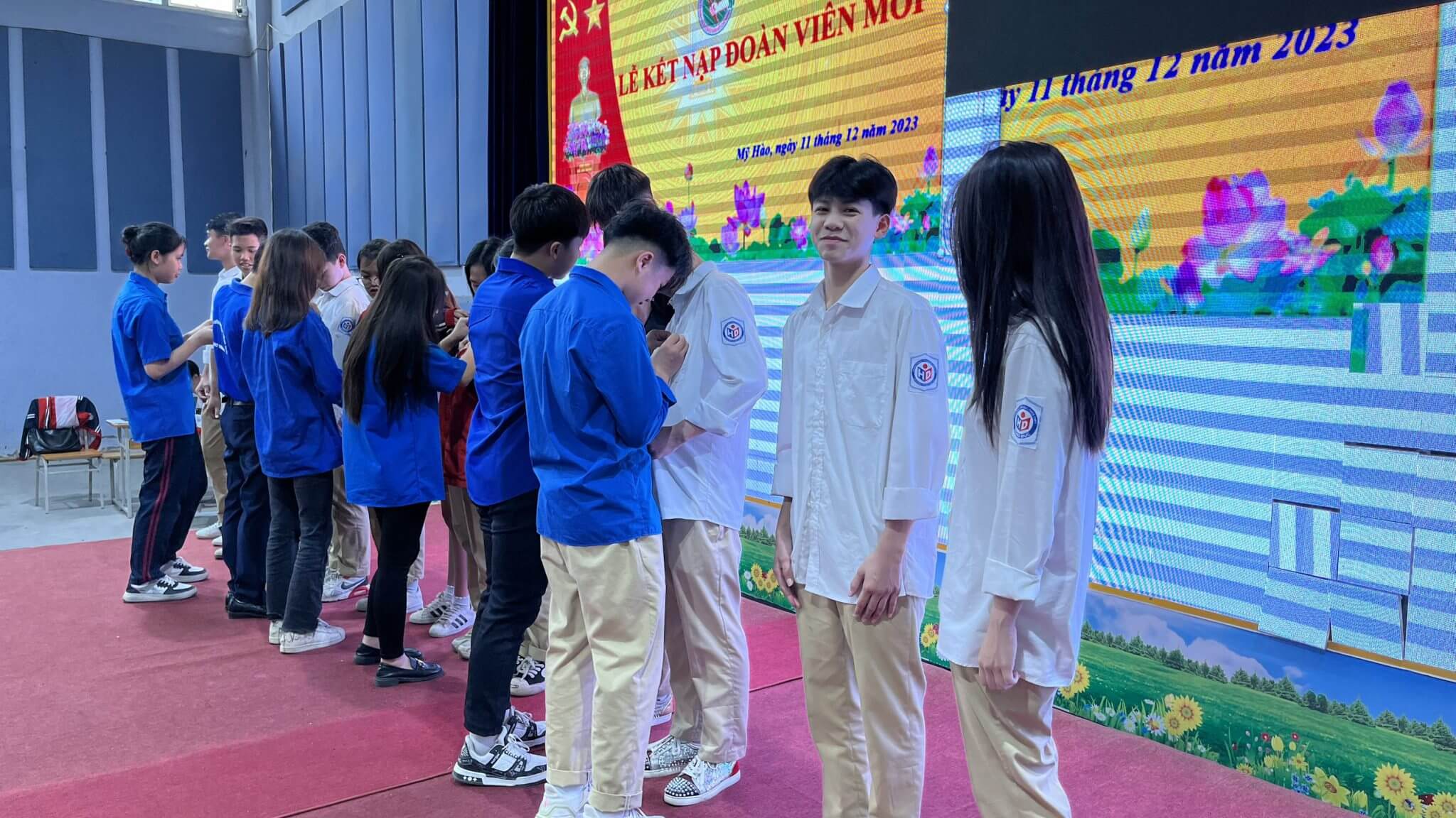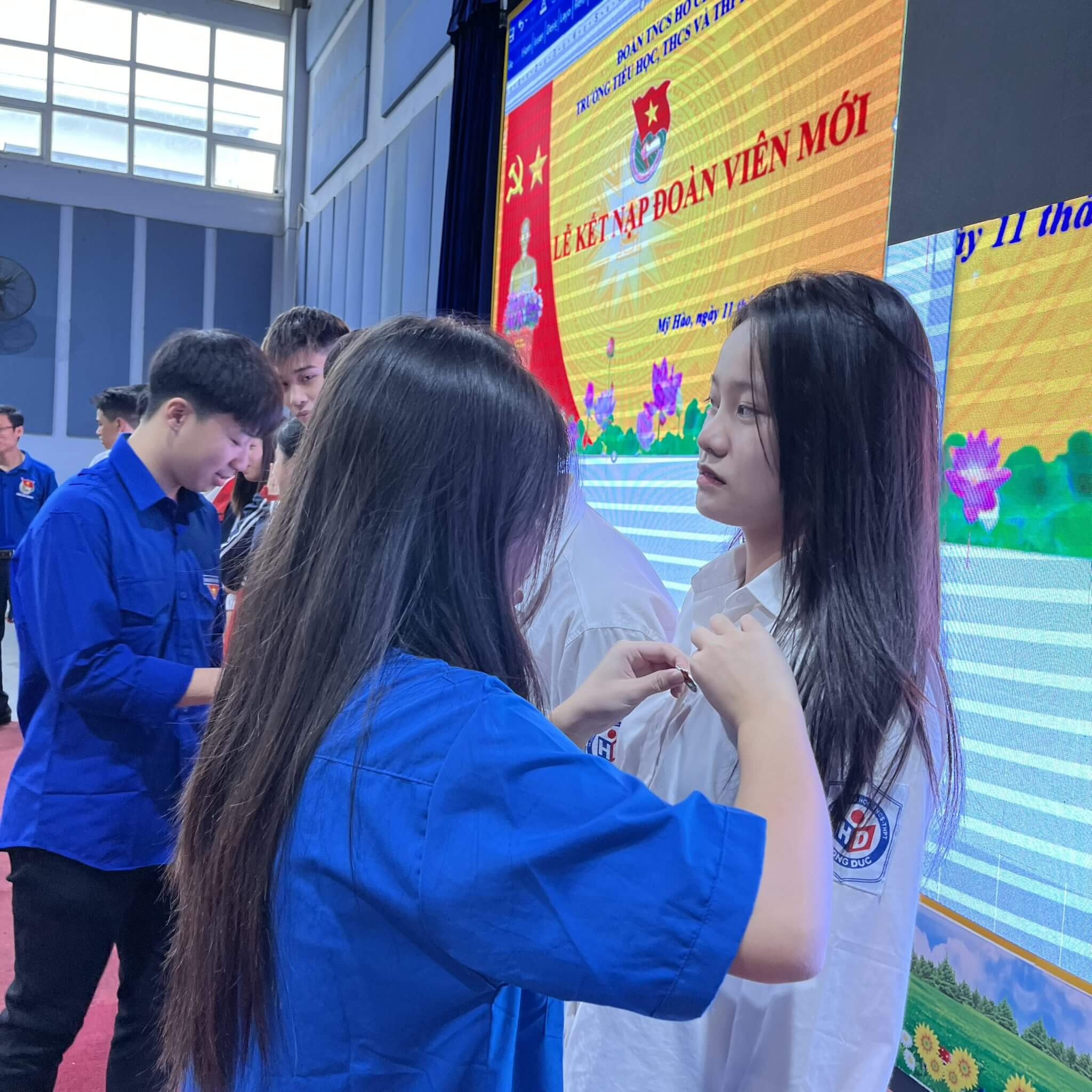 Trong khuôn khổ buổi lễ, các bạn học sinh đã đọc đơn xin vào Đoàn, cùng nhau hát Quốc ca – Đoàn ca và hô vang lời hứa danh dự của người Đoàns viên mới. Đến dự buổi lễ, đ/c Đỗ Thế Long đã trao huy hiệu Đoàn viên, trao sổ Đoàn và có những lời nhắn nhủ tâm huyết đối với các Đoàn viên mới trong việc thực hiện tốt và giữ gìn nội quy nề nếp học tập.