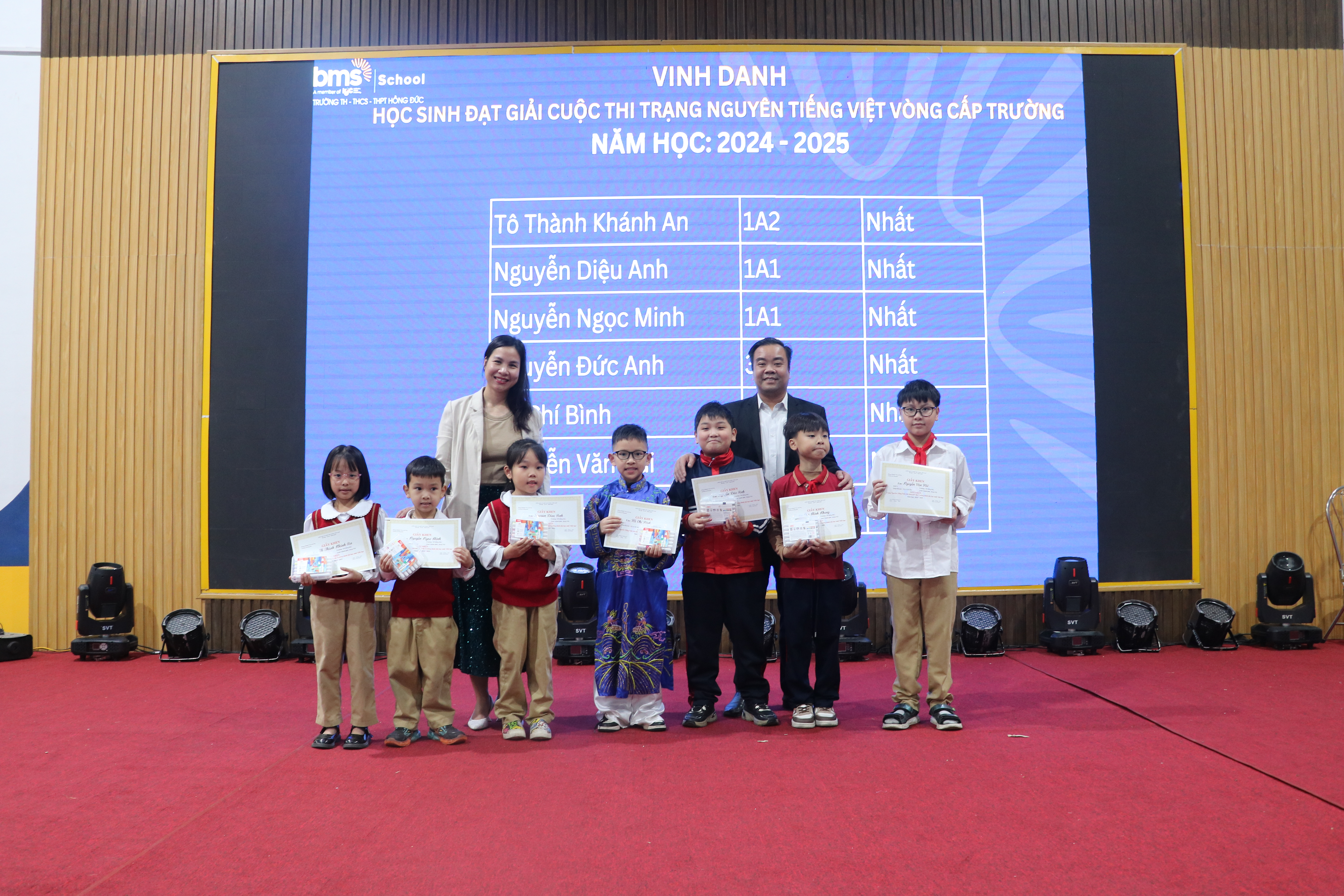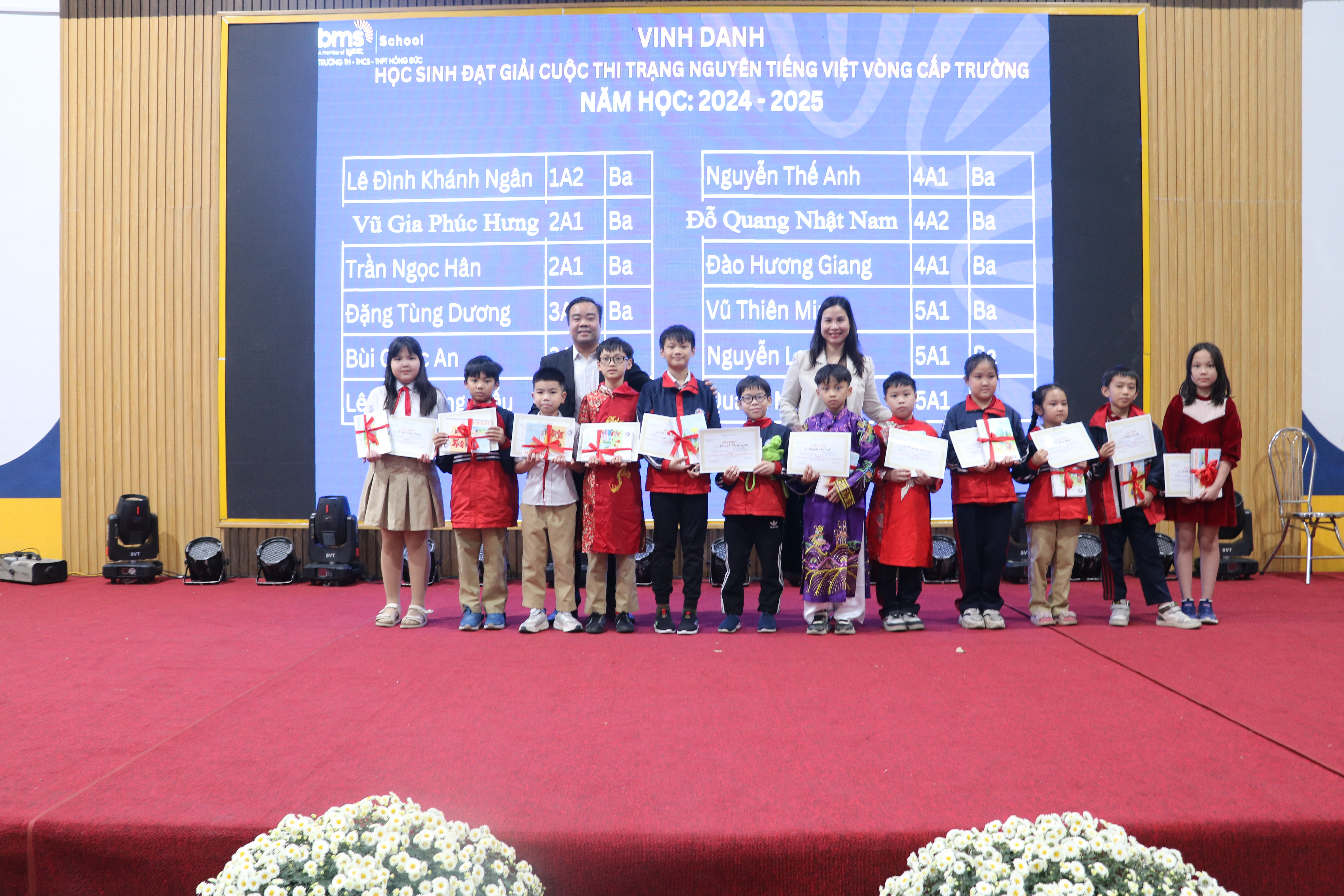 Ngày 22/01/2025, Trường Tiểu Học, THCS và THPT Hồng Đức (BMS Hưng Yên) đã diễn ra Lễ sơ kết học kỳ 1 năm học 2024-2025 trong không khí trang trọng và đầy phấn khởi. Đây là dịp để nhìn lại những thành tựu của các em học sinh khối Tiểu học trong học kỳ qua, đồng thời vinh danh và khen thưởng những cá nhân và tập thể xuất sắc.