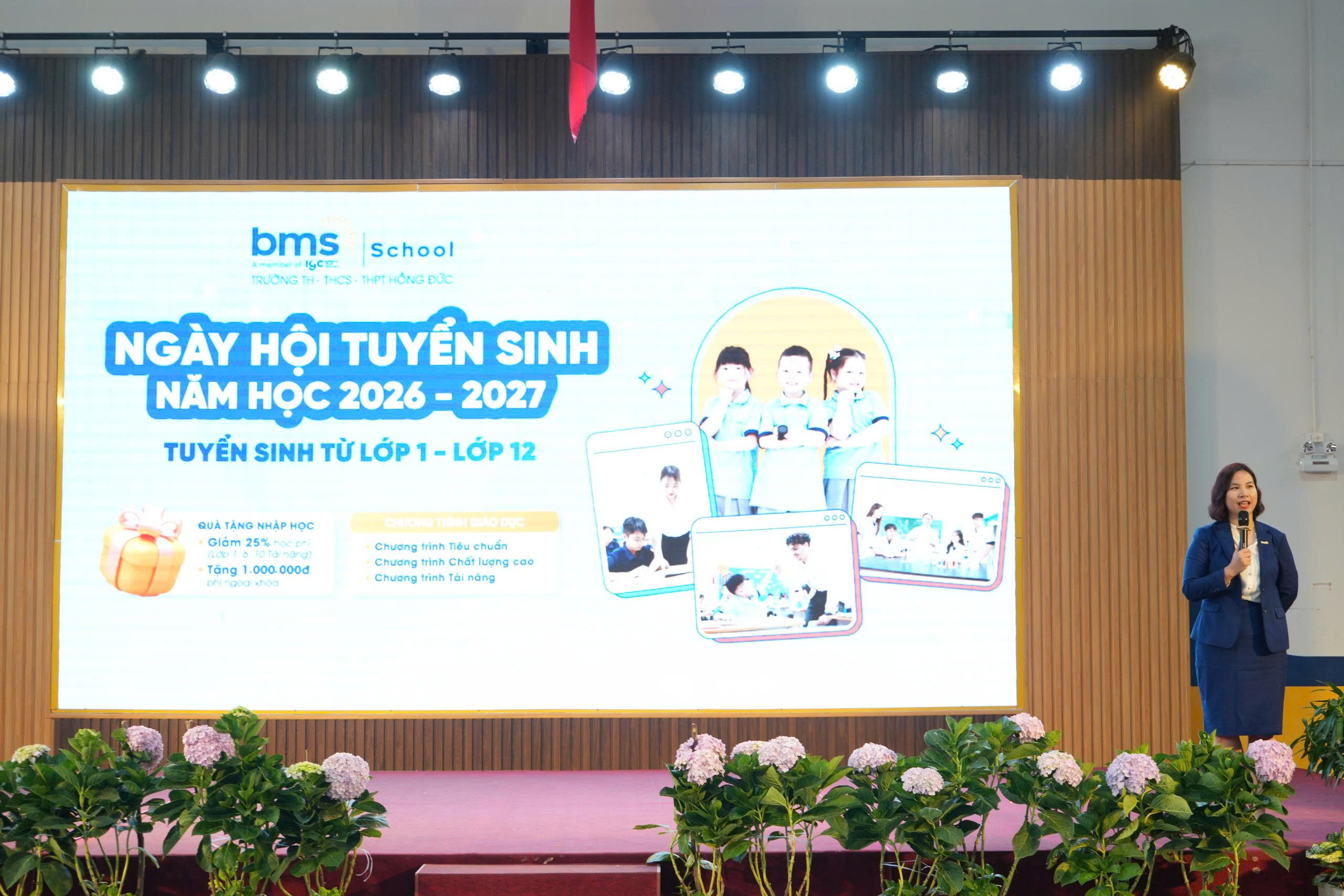 Sáng ngày 7/12/2025, tại khuôn viên Trường Tiểu học, THCS và THPT Hồng Đức (BMS Hưng Yên), Ngày hội Tuyển sinh năm học 2026–2027 đã diễn ra trong không khí sôi nổi và ấm áp. Ngay từ sớm, rất nhiều phụ huynh và học sinh đã có mặt để khám phá môi trường học tập, lắng nghe thông tin tuyển sinh cũng như trải nghiệm trực tiếp các hoạt động.