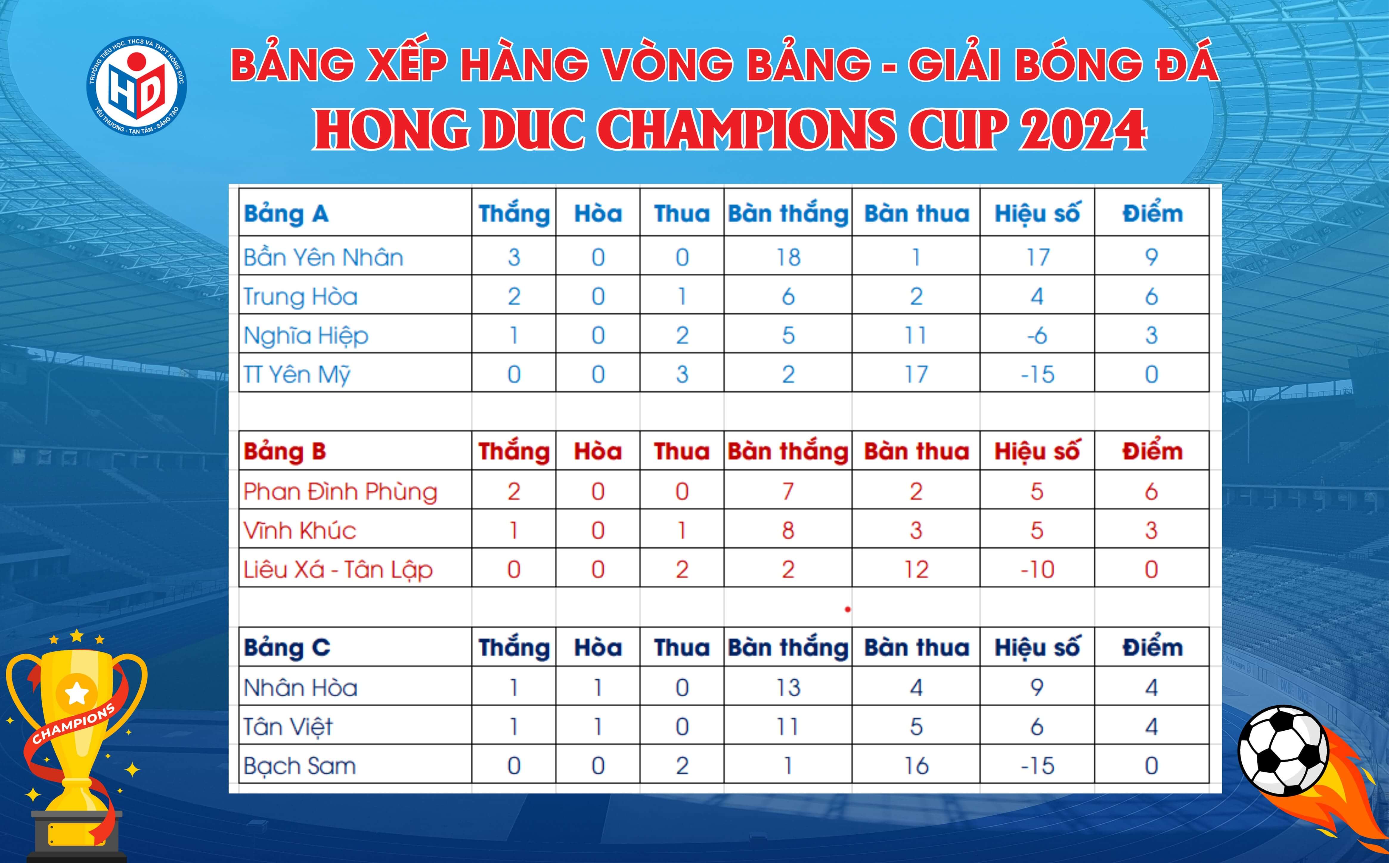 Hãy cùng xem kết quả bảng xếp hạng của vòng bảng và những đội bóng xuất sắc đã giành quyền vào vòng bán kết của giải đấu hấp dẫn này!