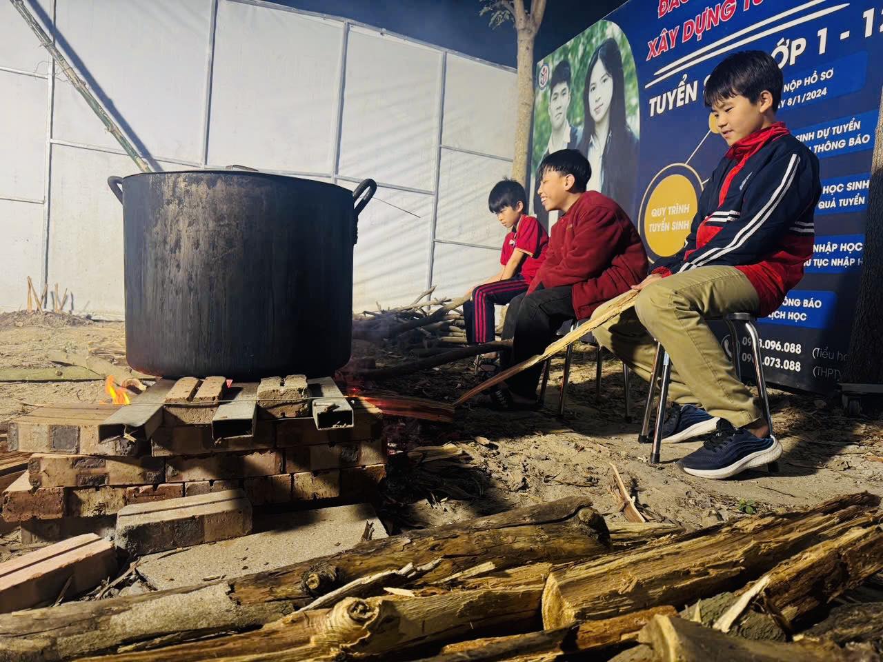 Đặc biệt, trong Đêm du mục 2 các em còn được tự tay làm mâm cơm Tết đoàn viên và ngồi trông bánh chưng bên những bếp lửa rực đỏ vô cùng hạnh phúc, ấm áp.