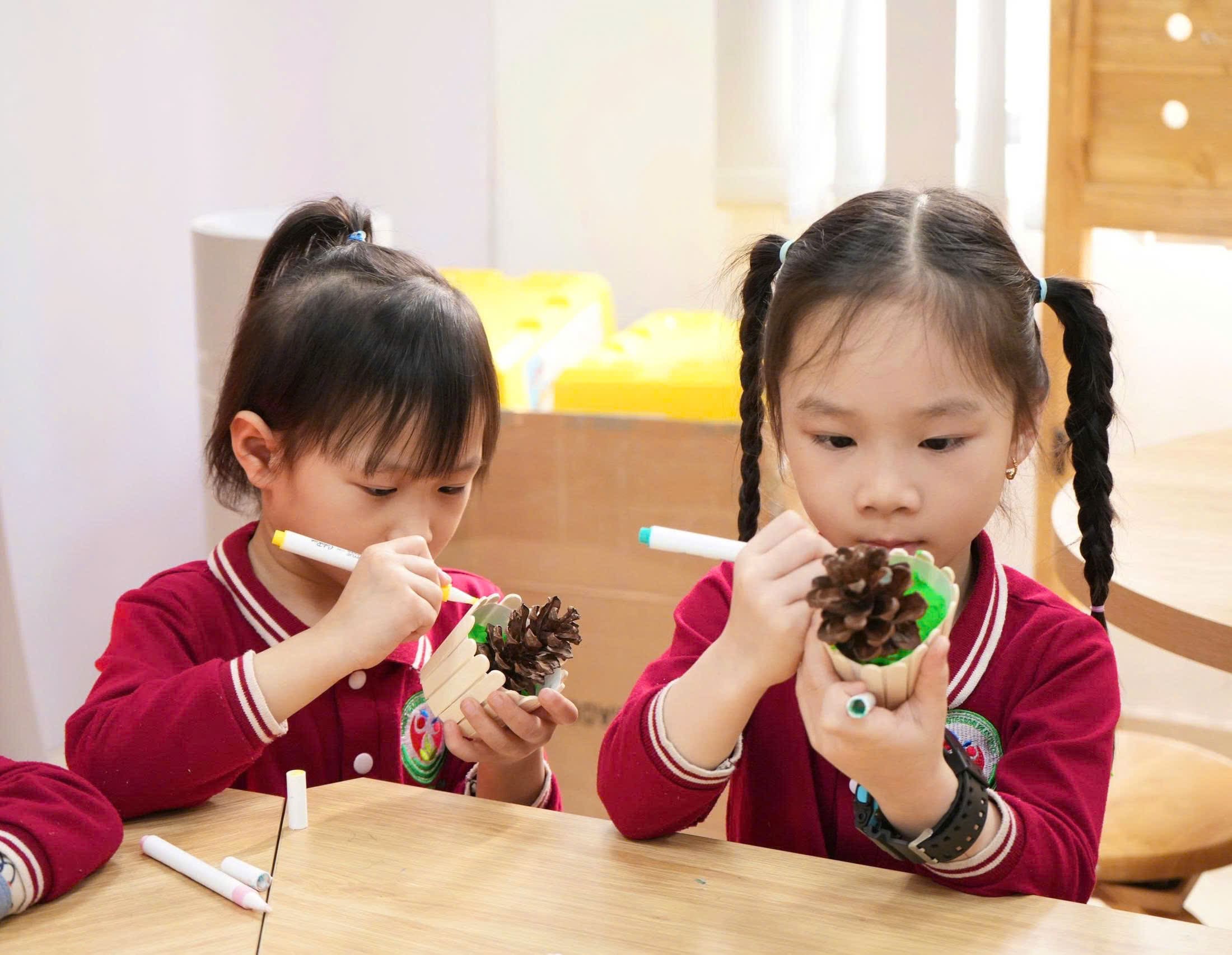 Tại trạm tạo hình cây thông Noel, sự sáng tạo của các bạn nhỏ được khơi dậy tối đa. Với nhiều nguyên vật liệu khác nhau, mỗi em tự tay thiết kế một cây thông mang màu sắc và phong cách yêu thích của riêng mình. Có cây thông rực rỡ, nổi bật; có cây thông nhẹ nhàng, tinh tế, tất cả đều phản ánh cảm xúc và niềm vui của trẻ.