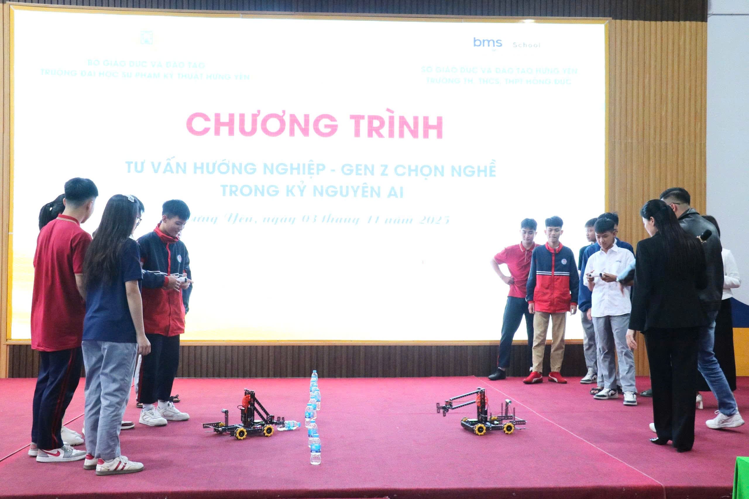 Thực hiện kế hoạch Hoạt động học sinh năm học 2025 – 2026, BMS Hưng Yên: Trường Tiểu học, THCS và THPT Hồng Đức phối hợp cùng Trường Đại học Sư phạm Kỹ thuật Hưng Yên đã tổ chức chương trình hướng nghiệp dành cho học sinh khối 11, 12 với chủ đề “Tư vấn hướng nghiệp – Gen Z chọn nghề trong kỷ nguyên AI.”