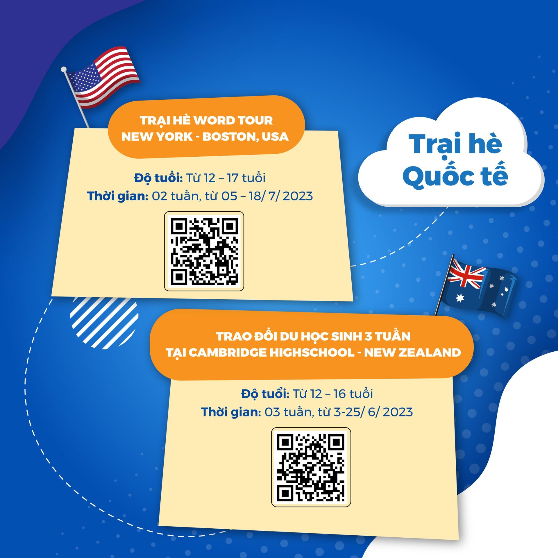 Một kỳ nghỉ hè rực rỡ sắc màu dành cho các công dân toàn cầu không thể thiếu các hoạt động khám phá, rèn luyện thể chất, kỹ năng; các trại hè thú vị ở những điểm check in đẹp nổi tiếng trên thế giới; những người bạn quốc tế cùng những kết nối đa văn hóa…