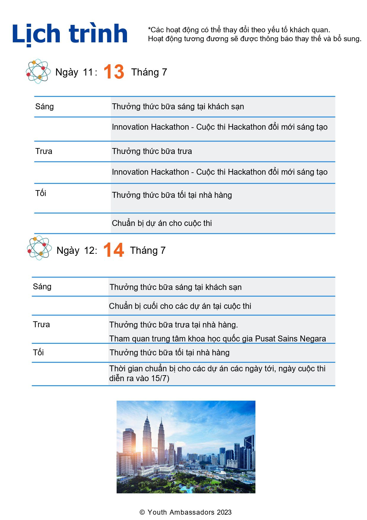 LỊCH TRÌNH TRẠI HÈ LÃNH ĐẠO TRẺ CHÂU Á ASLC