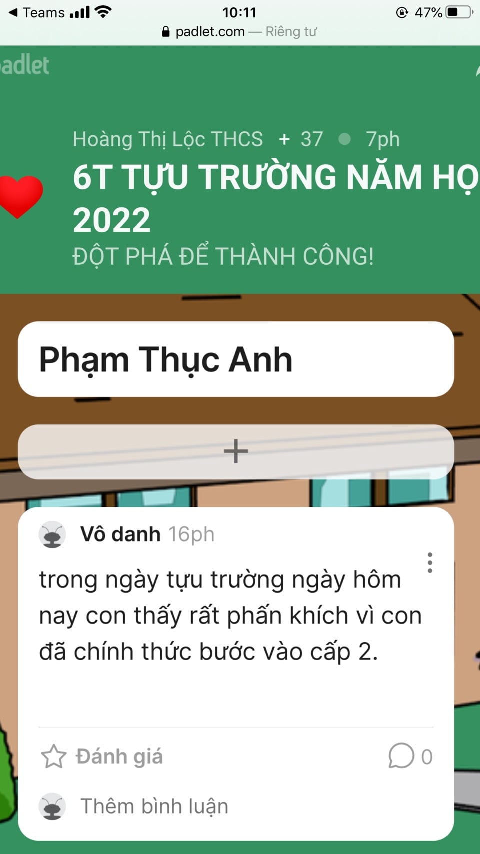 Và mời Quý thầy cô, Quý cha mẹ học sinh cùng xem một vài hình ảnh về những chia sẻ của các con trong buổi tựu trường đặc biệt này nhé!