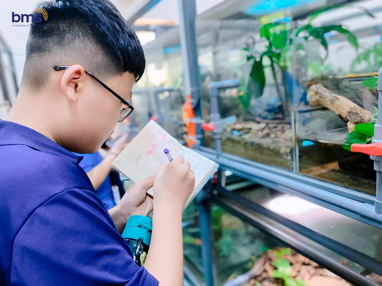 Đến Phòng công nghệ giáo dục môi trường, BMSers được tìm hiểu về đa dạng sinh học và vai trò của con người trong việc gìn giữ cân bằng sinh thái. Kết thúc chuyến đi, mỗi lớp đều tự thiết kế và ký vào bản cam kết với thiên nhiên, gửi gắm những lời hứa giản dị nhưng chứa đựng ý nghĩa sâu sắc về lối sống xanh và tinh thần yêu môi trường.