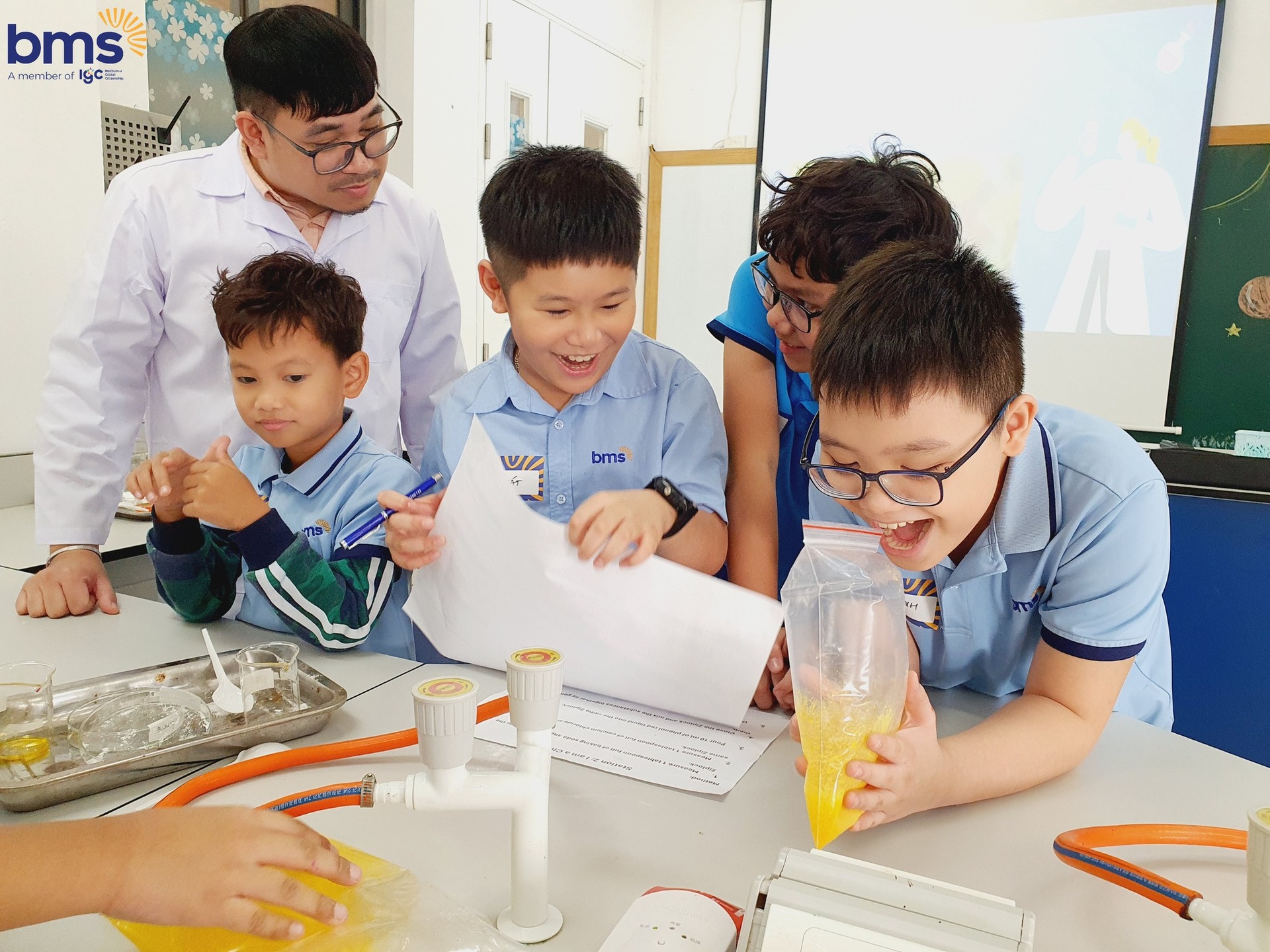 Bạn đã bao giờ tưởng tượng mình trở thành một nhà khoa học chưa? Lớp 6 ở Trường THCS Ban Mai có tiết học Science: "I’m a Little Scientist!" – nơi các bạn học sinh được khám phá những thí nghiệm khoa học vui nhộn, từ việc pha chế dung dịch tạo ra màu sắc kỳ diệu đến việc quan sát các phản ứng hóa học. Học khoa học không còn khô khan mà là sự sáng tạo và những thử nghiệm hấp dẫn, giúp các bạn khám phá những điều thú vị.