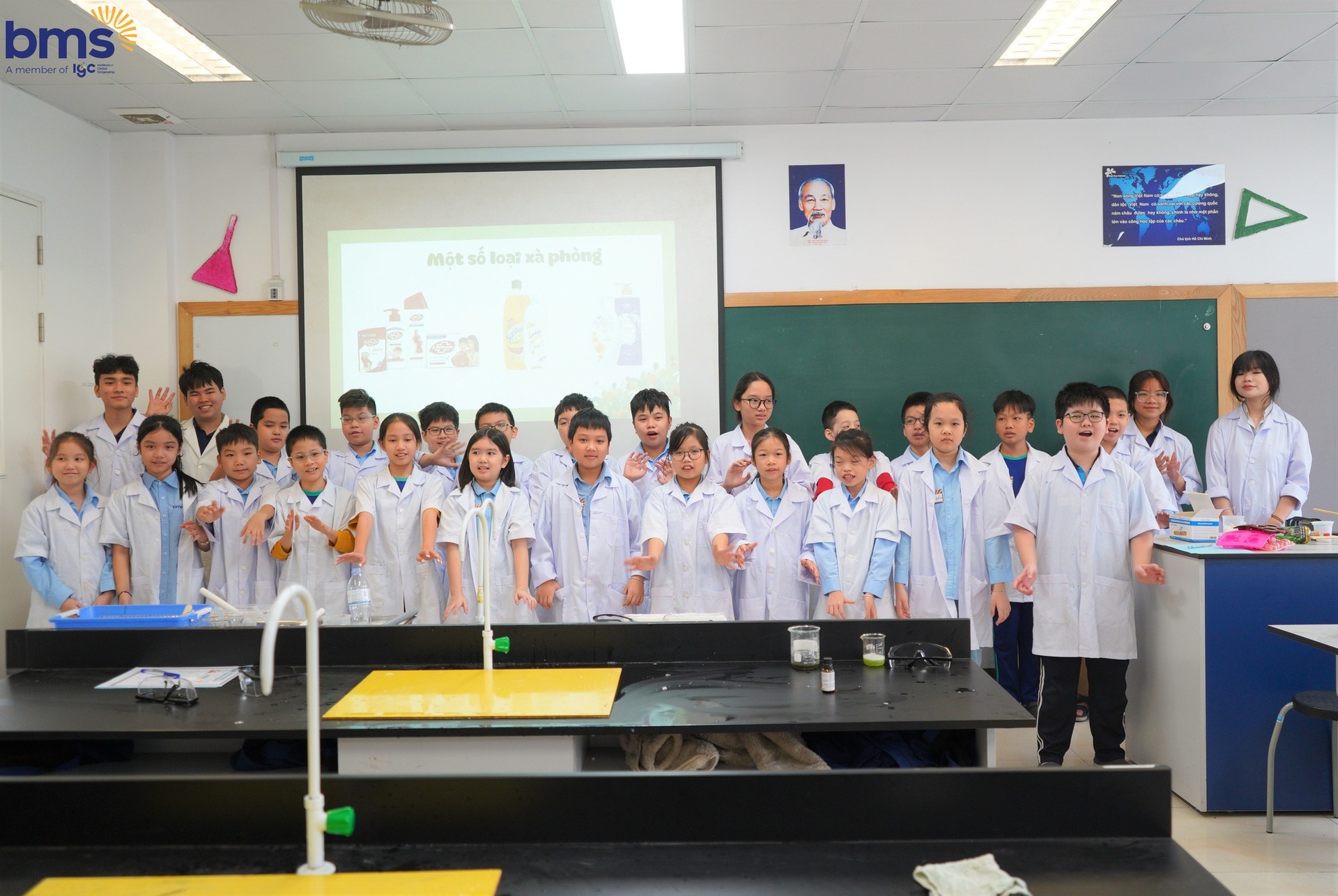 Nếu bạn nghĩ lớp 6 chỉ có sách giáo khoa thì thử tưởng tượng việc tự tay làm xà phòng trong tiết Khoa học: "Xà phòng huyền ảo". Các bạn sẽ được tìm hiểu quy trình làm xà phòng từ những nguyên liệu đơn giản và theo dõi những “phép màu” hóa học diễn ra ngay trước mắt. Hoạt động này giúp bạn học về hóa học và rèn luyện kỹ năng thực hành, sáng tạo và kiên nhẫn.