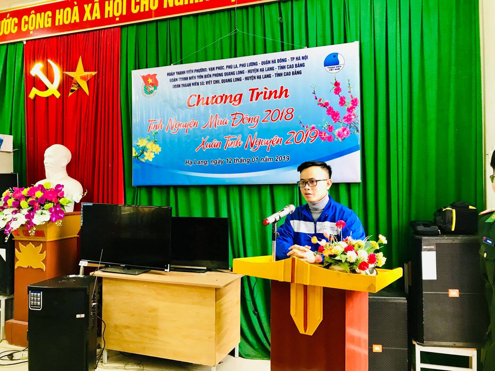 Ấm áp và đầy nghĩa tình đó là hình ảnh của những Đoàn viên, thanh niên đại diện cho những gương mặt trẻ tiêu biểu của Quận Hà Đông đã hăng hái tham gia chương trình “Tình nguyện mùa Đông 2018 – Xuân tình nguyện 2019″của tuổi trẻ quận Hà Đông tại tỉnh Cao Bằng. Trong 3 ngày, từ 11/1 -13/01/2019, Đoàn TN phường Phú Lương, Vạn Phúc, Phú La đã tổ chức thành công chương trình “Tình nguyện mùa đông 2018 – Xuân tình nguyện 2019” tại xã Việt Chu, xã Quang Long, huyện Hạ Lang, tỉnh Cao Bằng. Tham gia chương trình có đại diện của Chi Đoàn Trường THCS – THPT Ban Mai: Thầy Nguyễn Ngọc Thiện và Thầy Nguyễn Trạc Huy đã tích cực chung tay, góp phần tô thắm lá cờ vẻ vang của Đoàn TNCS Hồ Chí Minh với khẩu hiệu: “Đâu cần thanh niên có – đâu khó có thanh niên”. Và chính hình ảnh của các Thầy luôn hết mình, hăng say tham gia các công tác thiện nguyện sẽ là những tấm gương đi đầu để các Đội viên, Đoàn viên trong Nhà trường học tập và noi theo.