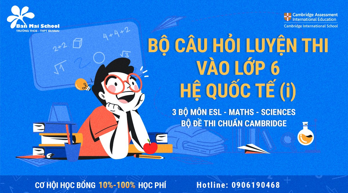 Với mong muốn đồng hành cùng CMHS chuẩn bị cho các con học sinh một tâm thế tốt nhất trước khi tham gia học tập chương trình tiêu chuẩn Quốc tế, Ban chuyên môn Nhà trường đã xuất bản bộ “CÂU HỎI LUYỆN THI VÀO LỚP 6 HỆ QUỐC TẾ (i) nhằm:
