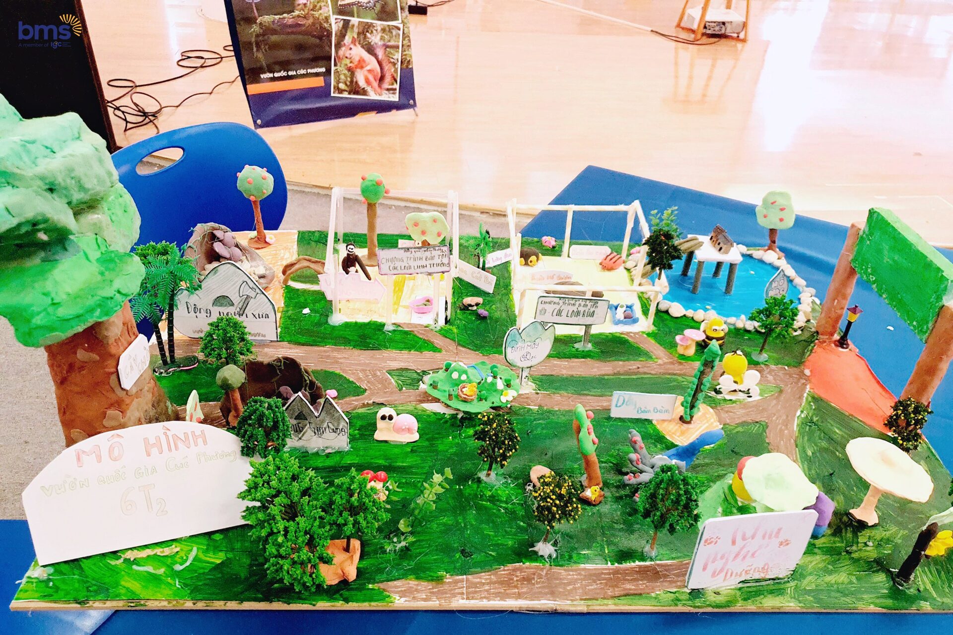 Mô hình Rừng Quốc gia Cúc Phương được làm thủ công từ các loại vật dụng tái chế của học sinh BMS