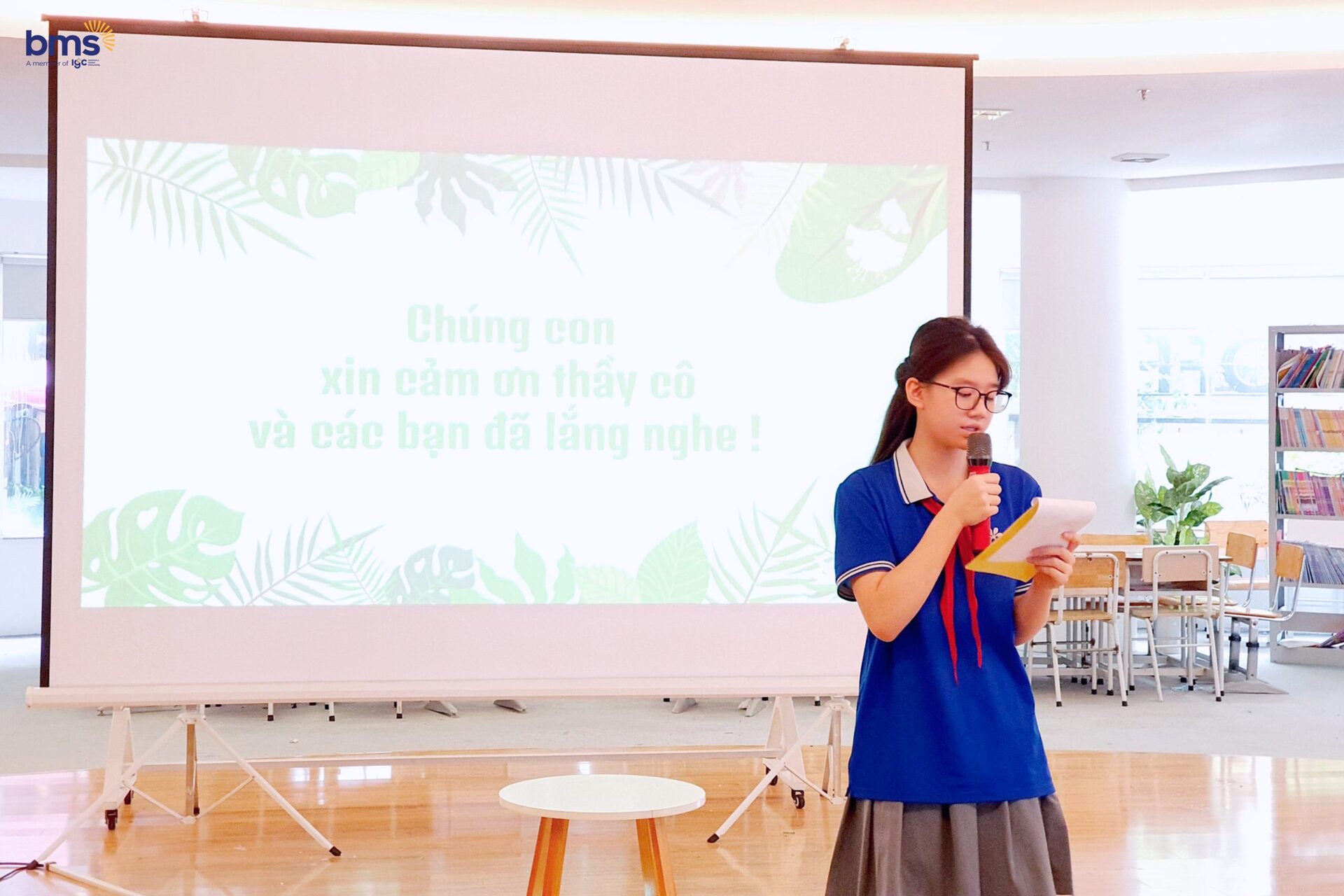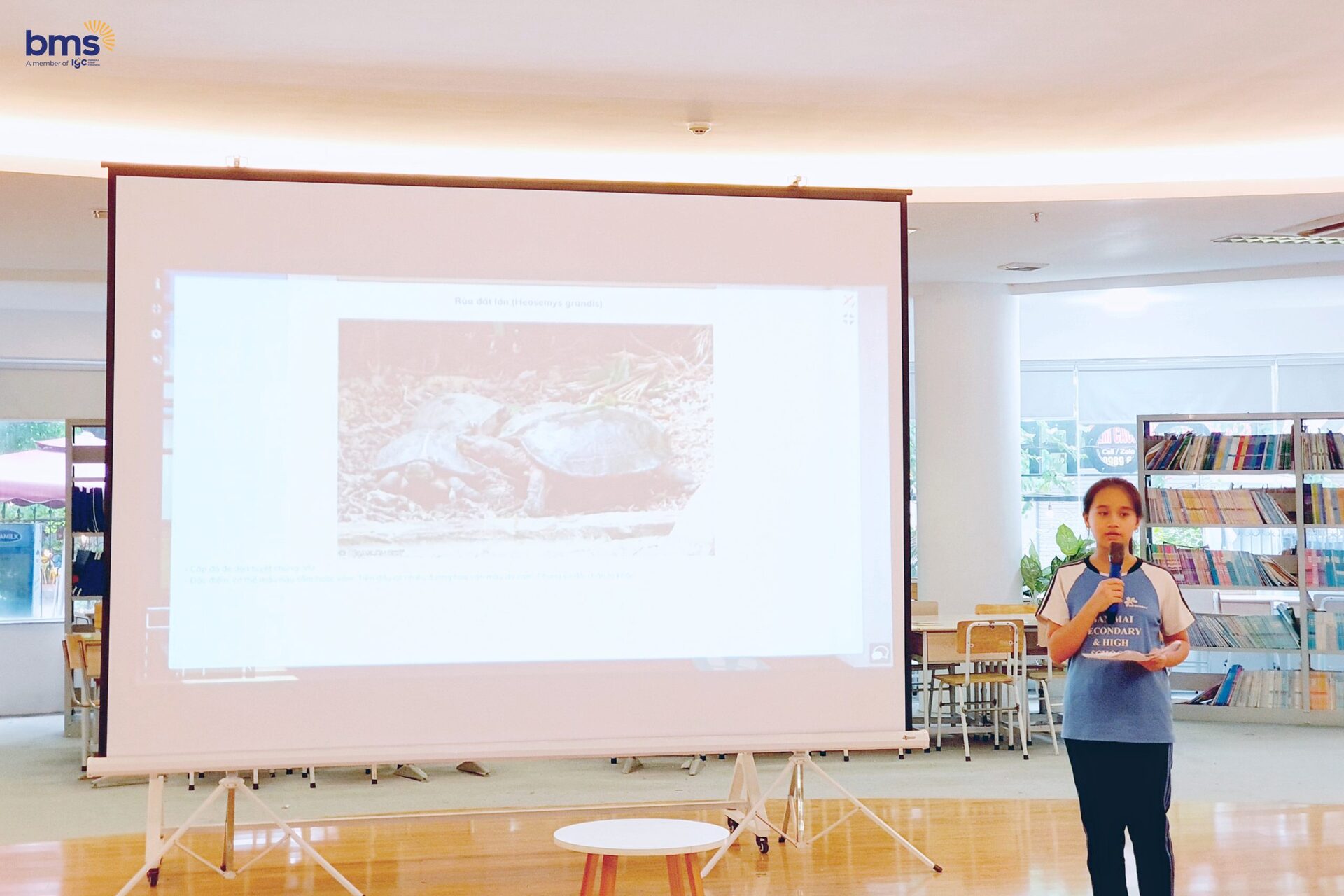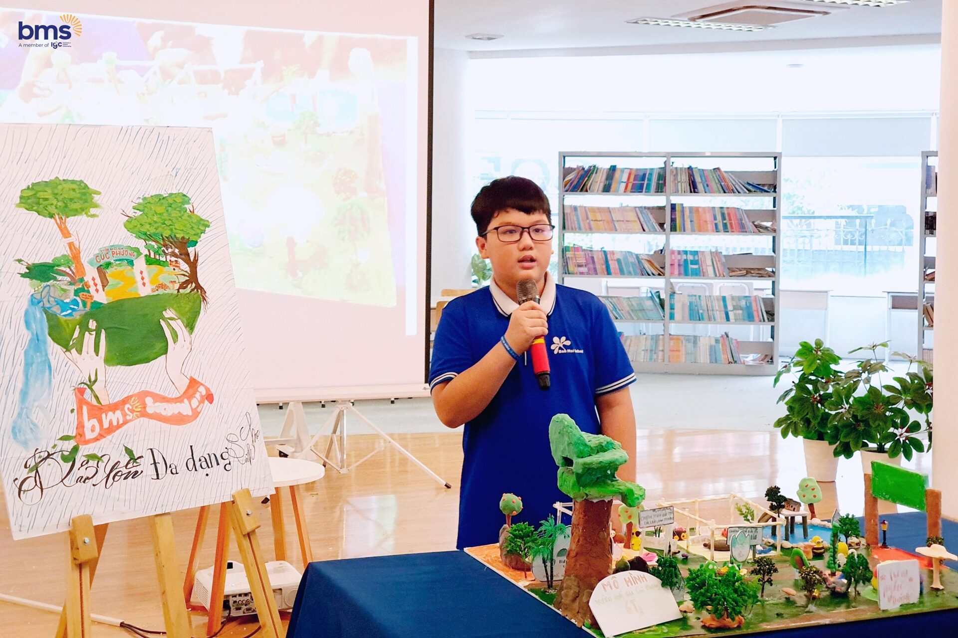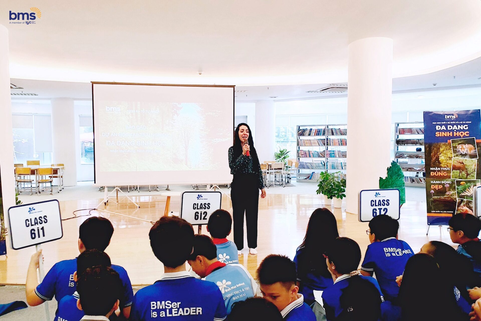 Phát huy thế mạnh là năng lực ngôn ngữ, các bạn lớp 6i1 và 6i2 đã hợp lực cùng nhau trong 1 vở kịch đầy ý nghĩa nhân văn “Biodiversity”. Các học sinh đã hóa thân vào các vai diễn: Culi nhỏ, vượn má trắng phía nam, vooc chà vá chân xám, rùa sa nhân, thợ săn, kiểm lâm, giáo viên…để tái hiện những loài vật đang gặp nguy hiểm và kêu cứu. Các nhân vật cũng nhắn gửi tới các bạn học sinh BMS nói riêng và các bạn học sinh trên thế giới nói chung hãy cùng nhau thể hiện tình yêu, sự tôn trọng với thiên nhiên để bảo vệ Đa dạng sinh học- con người chúng ta là một phần trong đó.