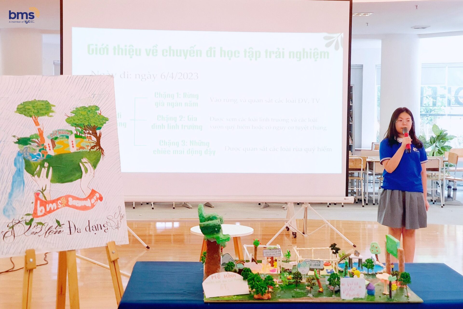 Sau khi hoàn thành dự án trải nghiệm tại Vườn Quốc Gia Cúc Phương- Vườn Quốc Gia đầu tiên của Việt Nam vào ngày 06/04/2023, các con học sinh đã hoà mình vào dòng chảy mãnh liệt của sự sống, quan sát khu rừng nguyên sinh vẫn ẩn chứa nhiều bí ẩn, trải nghiệm khám phá vô vàn các loài sinh vật với tất cả vẻ đẹp cùng sự sống đang chờ đón. Sau đó, các con đã hoàn thiện những nội dung nghiên cứu và tìm hiểu dựa trên những trải nghiệm thực tế nhất trên hành trình để có một buổi báo cáo ý nghĩa trước toàn trường.